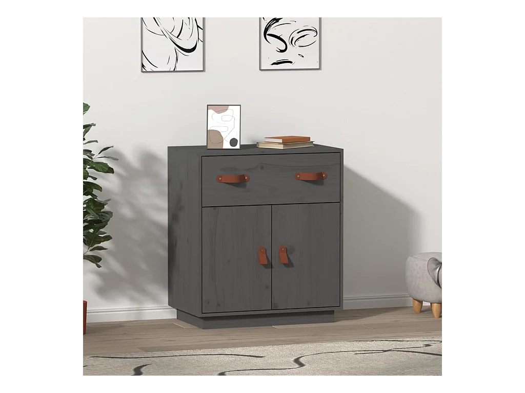 Sideboard Grau - Lowboard 65,5x40x75 cm Massivholz Kiefer -RM16853