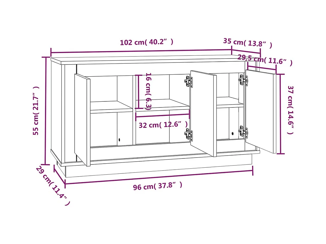 Sideboard Grau Sonoma 102x35x55 cm Holzwerkstoff