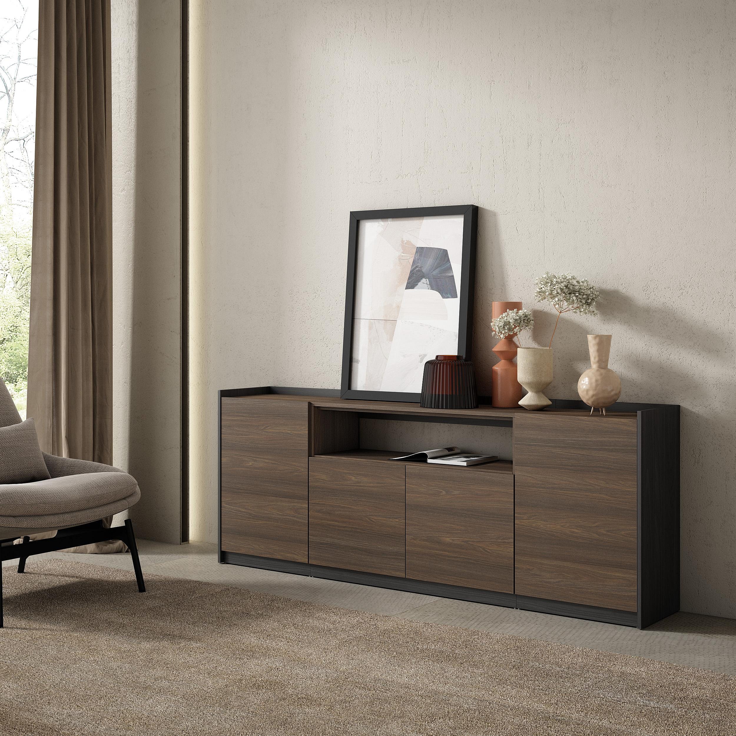 Sideboard, Highboard, 207x80x37 cm, 4 Türen, Wohnzimmer, Küche, Dunkler Eiche und Schwarz