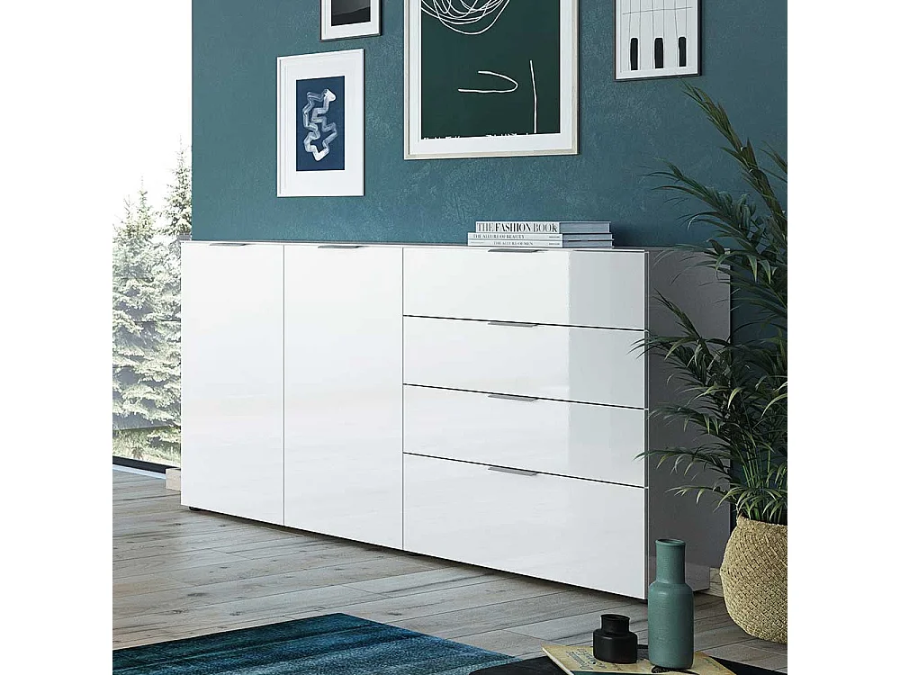 Sideboard in Weiß Glas beschichtet Made in Germany