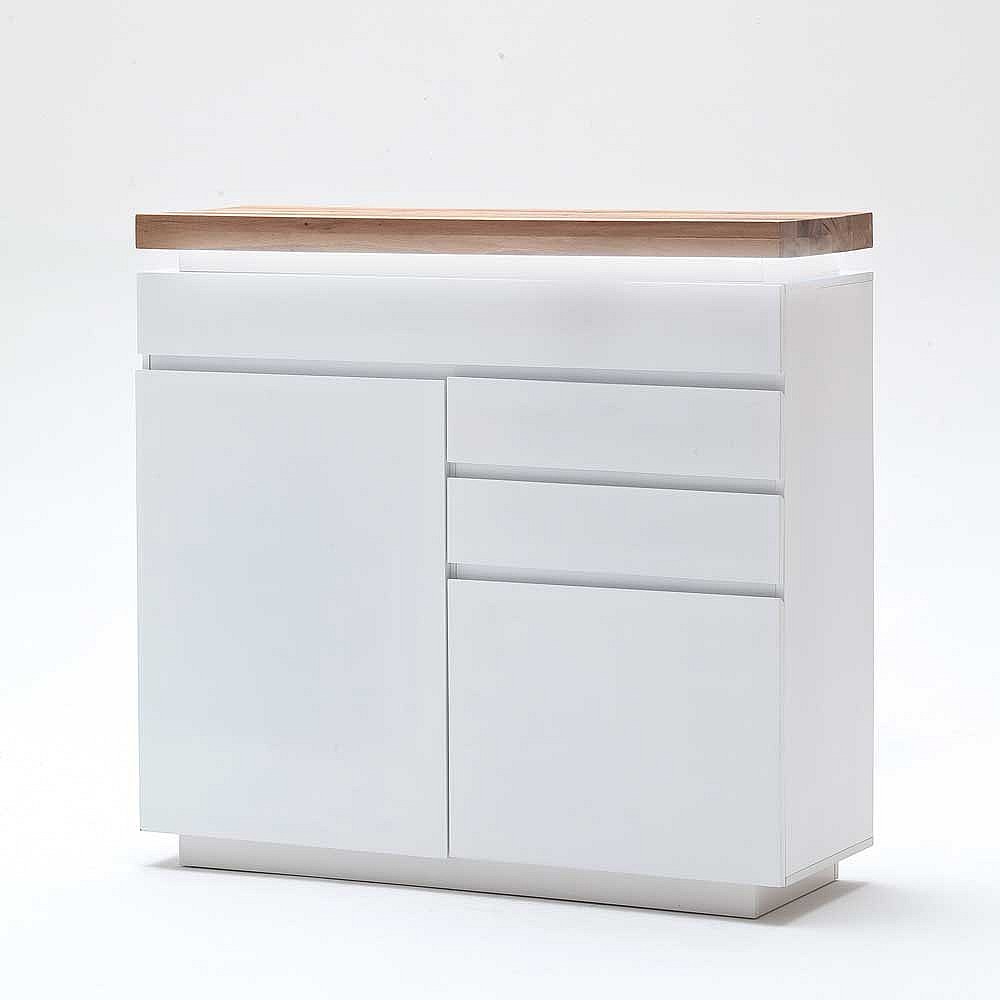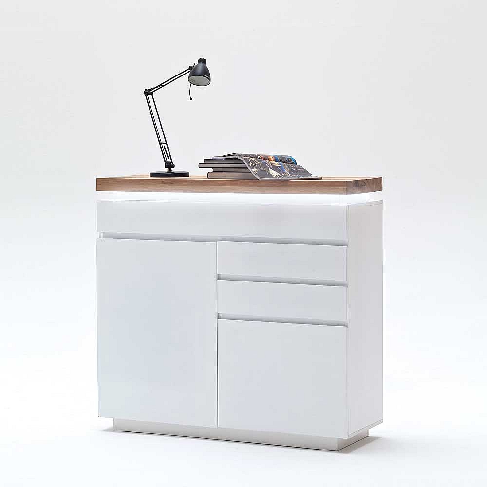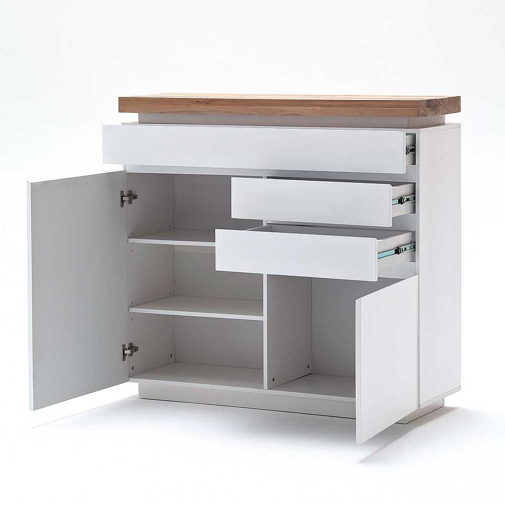 Sideboard in Weiß mit Wildeiche Massivholz