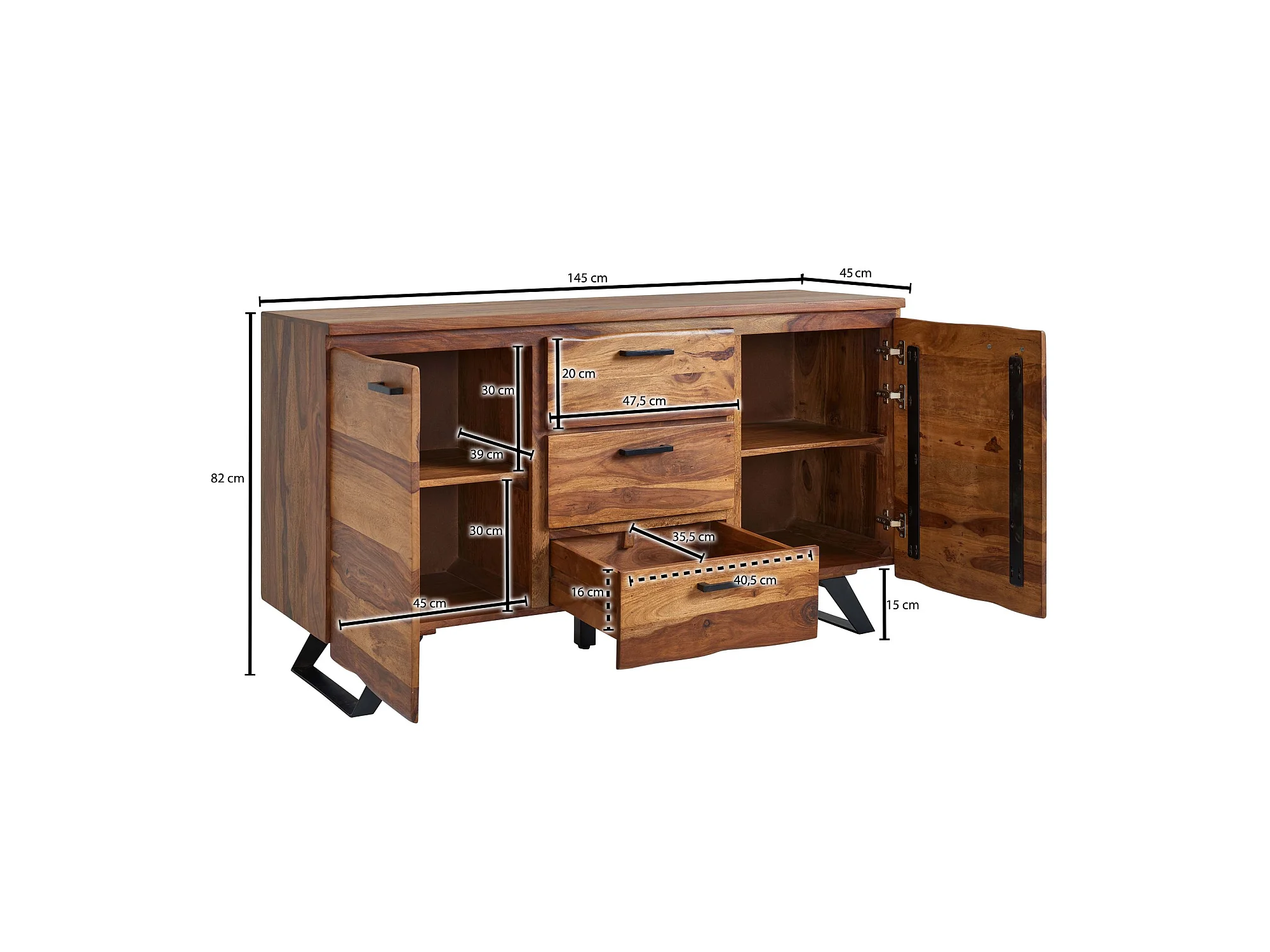 Sideboard Kommode 145x82x45 cm Holz Massiv Anrichte Modern Schubladen