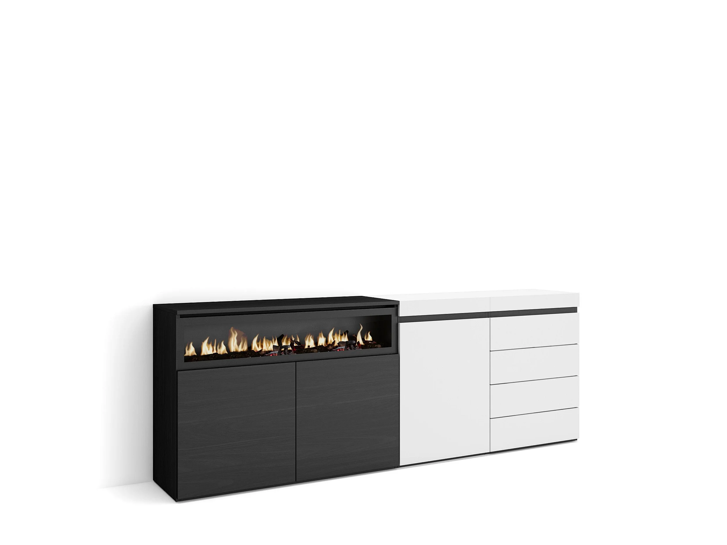 Sideboard, Kommode, 207x35x75cm, Für Schlafzimmer, Elektrokamin, Kommode mit Schubladen, Weiß