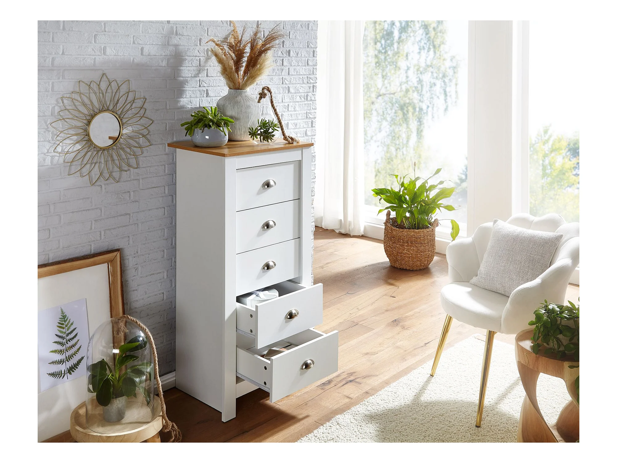 Sideboard Kommode Weiß / Eiche 53x114x39 cm Anrichte Schubladenkommode