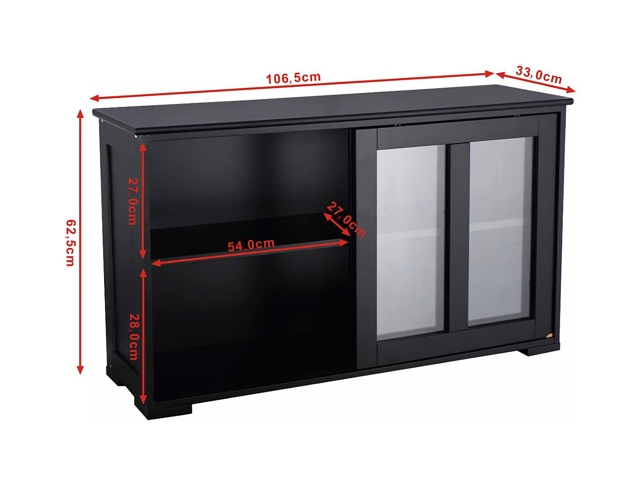 Sideboard Küchenschrank Wohnzimmerregel mit Schiebetüren Schwarz 106,5 x 33 x 62,5 cm