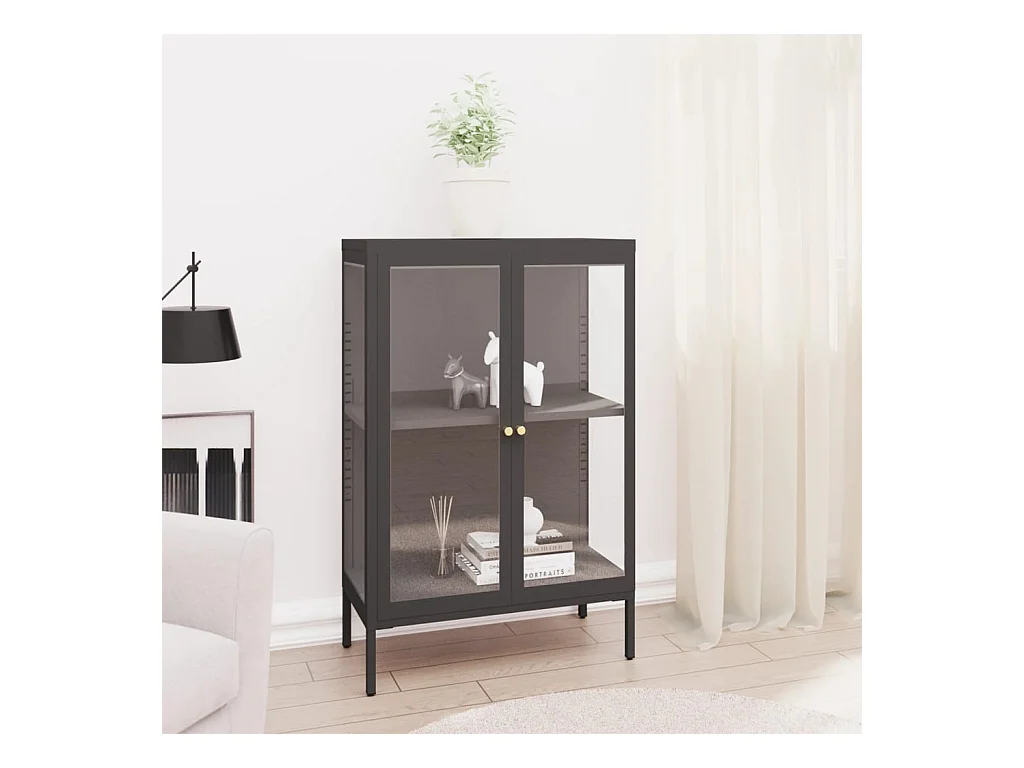 Sideboard Lowboard - Anthrazit 75x35x105 cm Stahl und Glas -RM89314