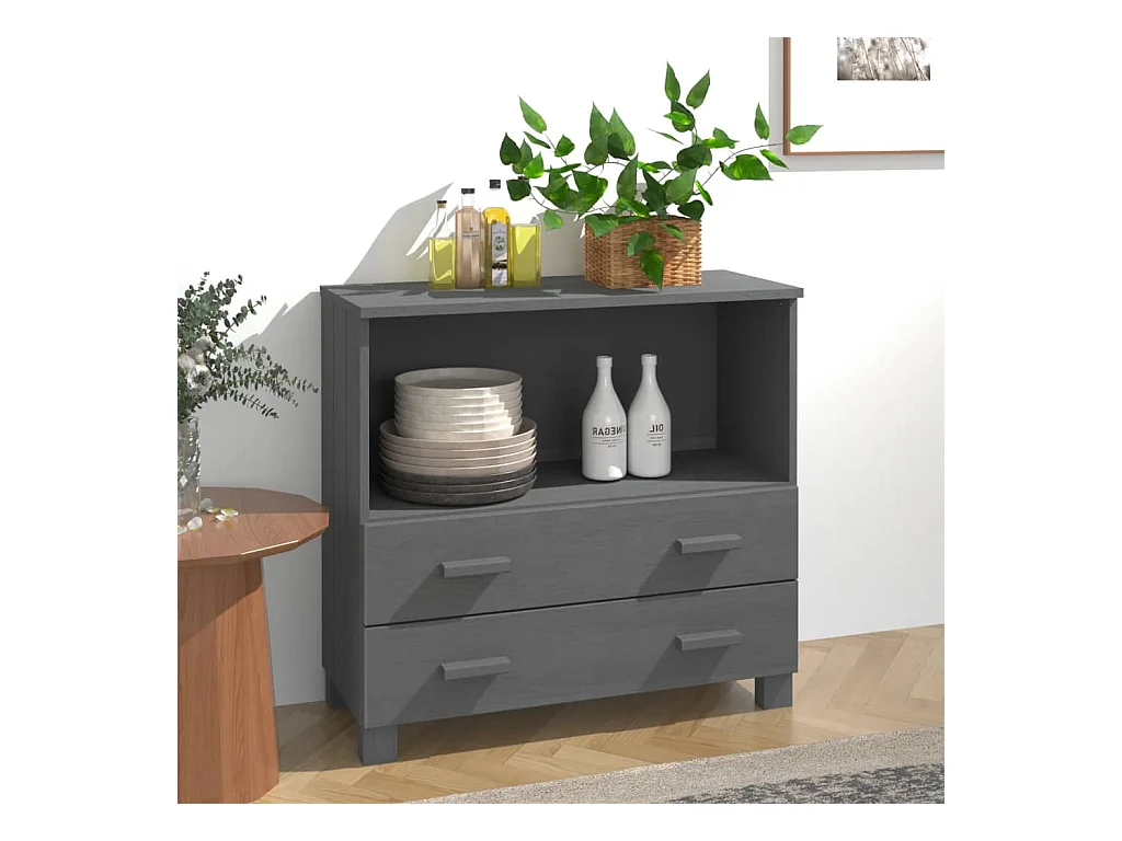 Sideboard Lowboard - HAMAR Dunkelgrau 85x35x80 cm Massivholz Kiefer -RM57502