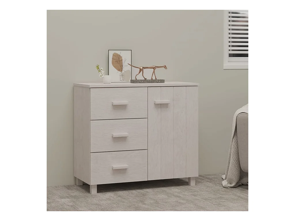 Sideboard Lowboard - HAMAR Weiß 90x40x80 cm Massivholz Kiefer -RM87178