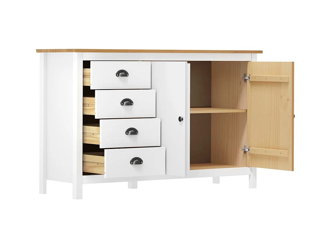 Sideboard Lowboard - Hill Weiß 130x40x80 cm Massivholz Kiefer -RM56229