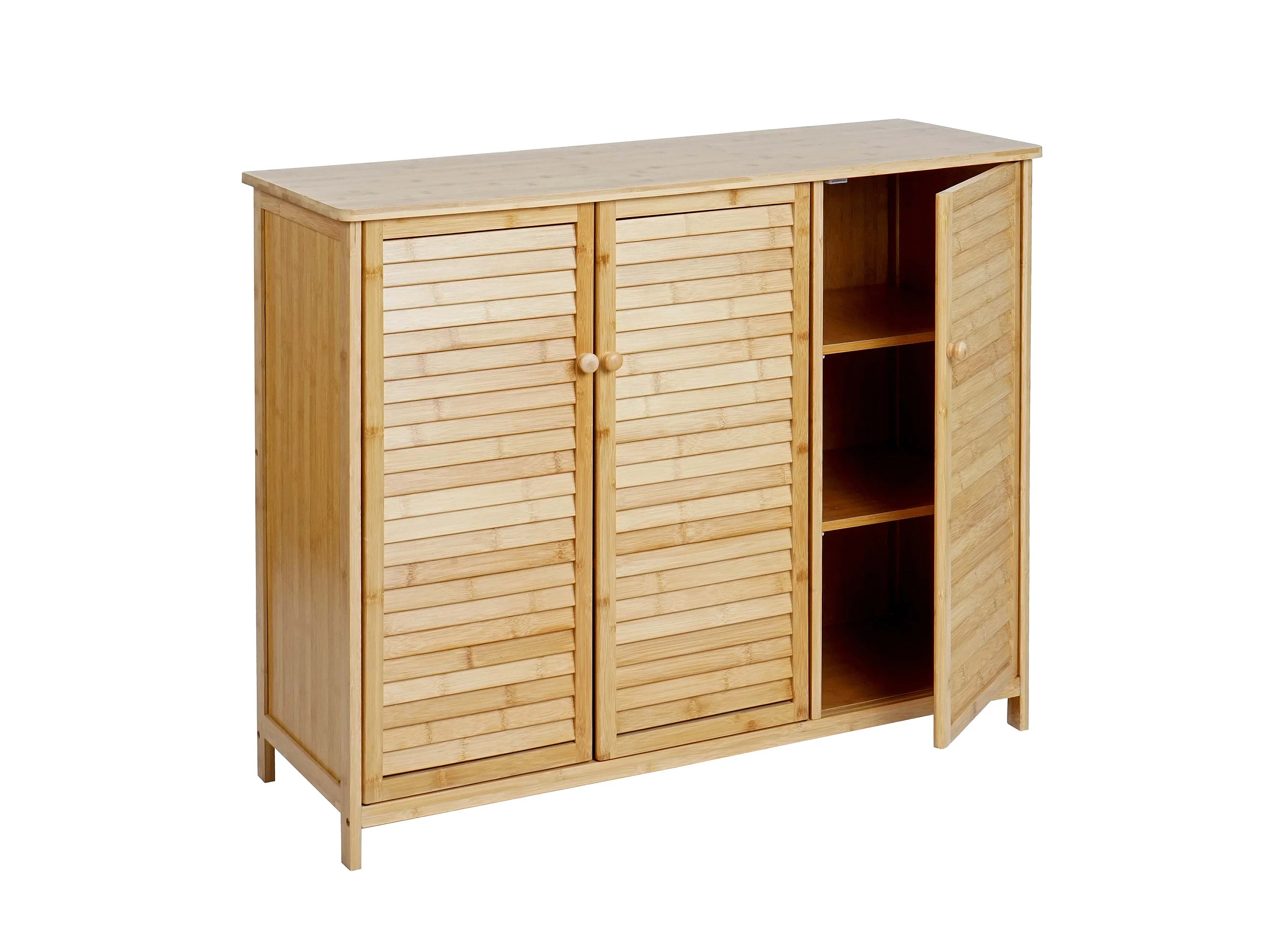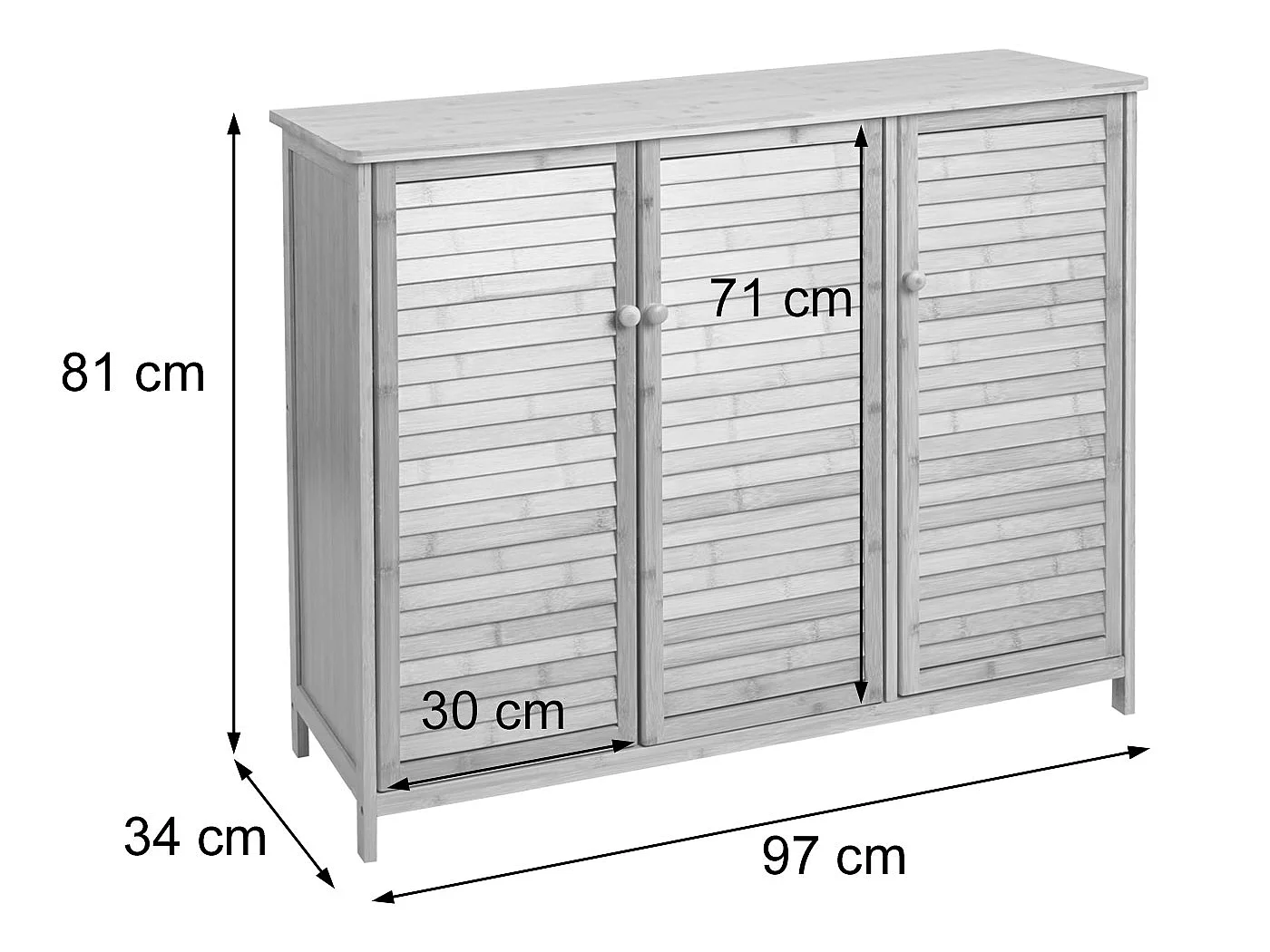 Sideboard MCW-B18, Schrank Kommode Highboard, 3 Türen Bambus 81x97x34cm