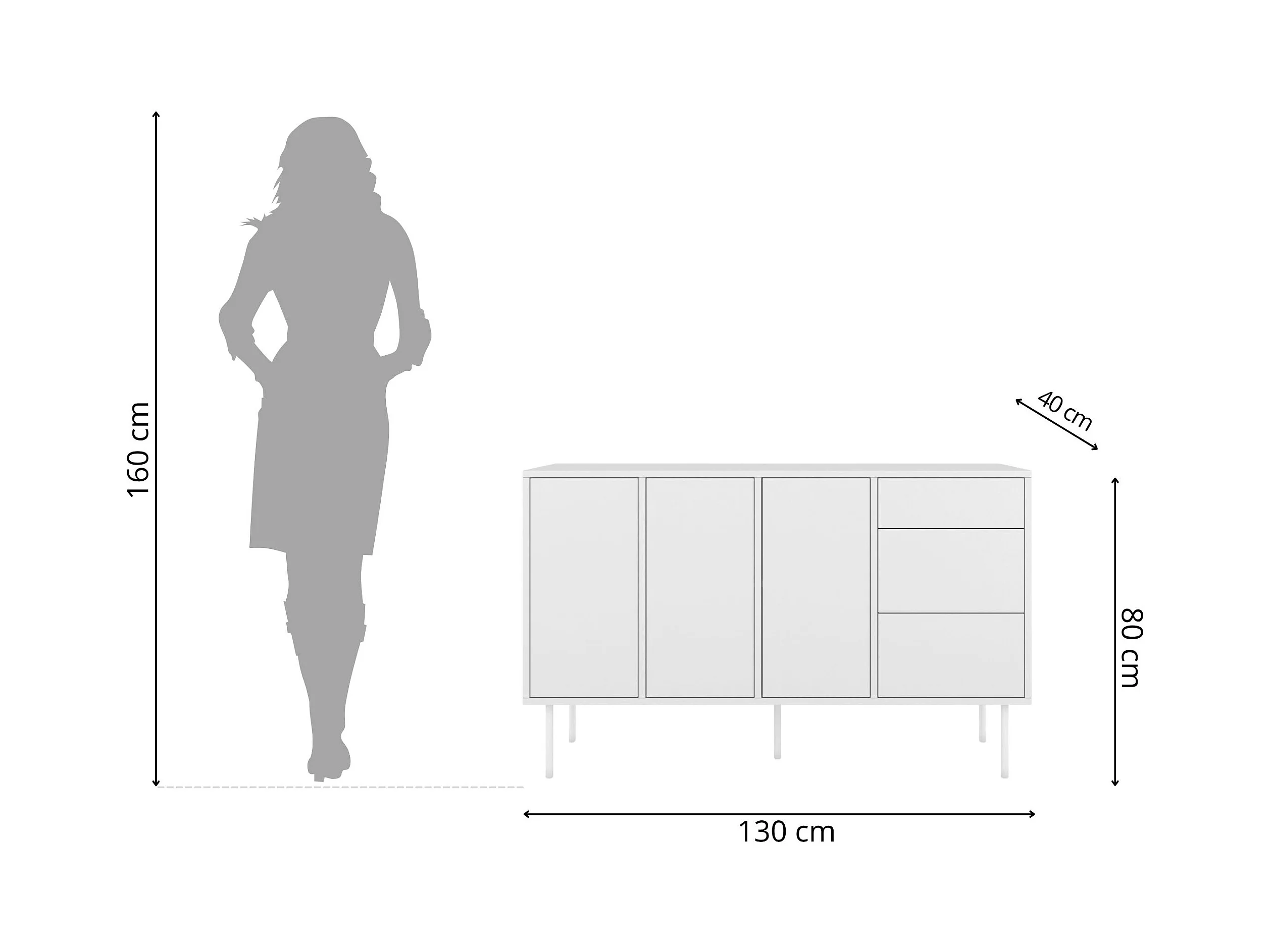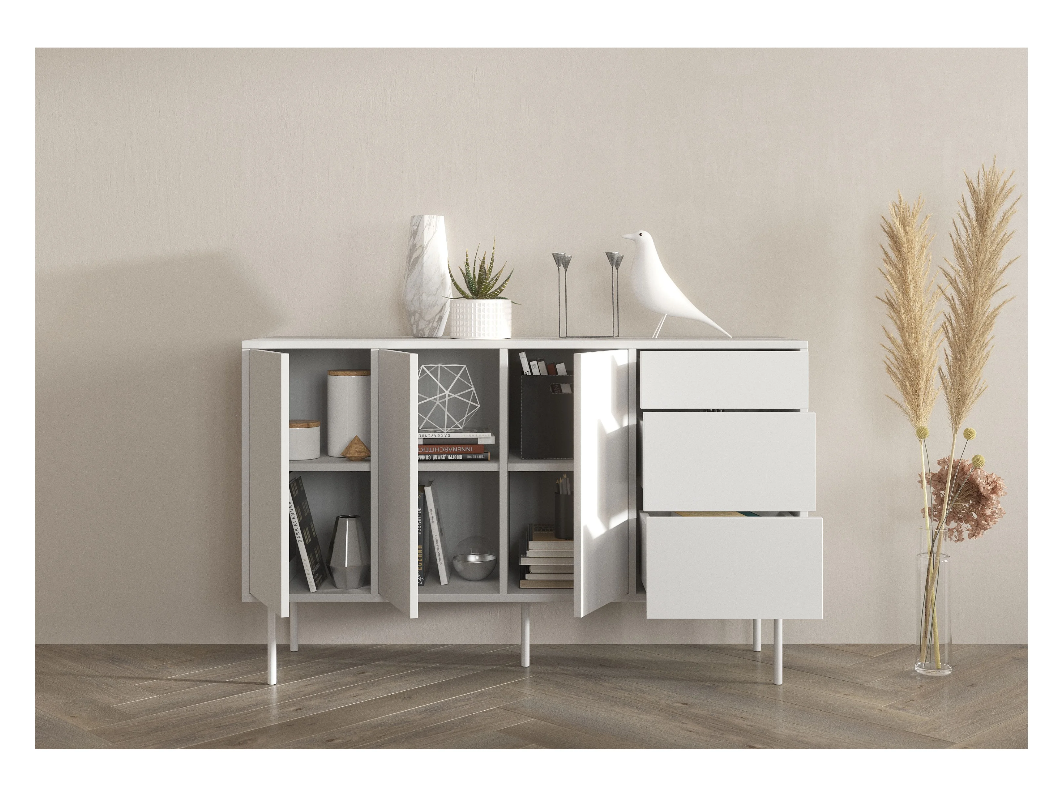 Sideboard Mirka, weiß, push to open system, minimalistisch