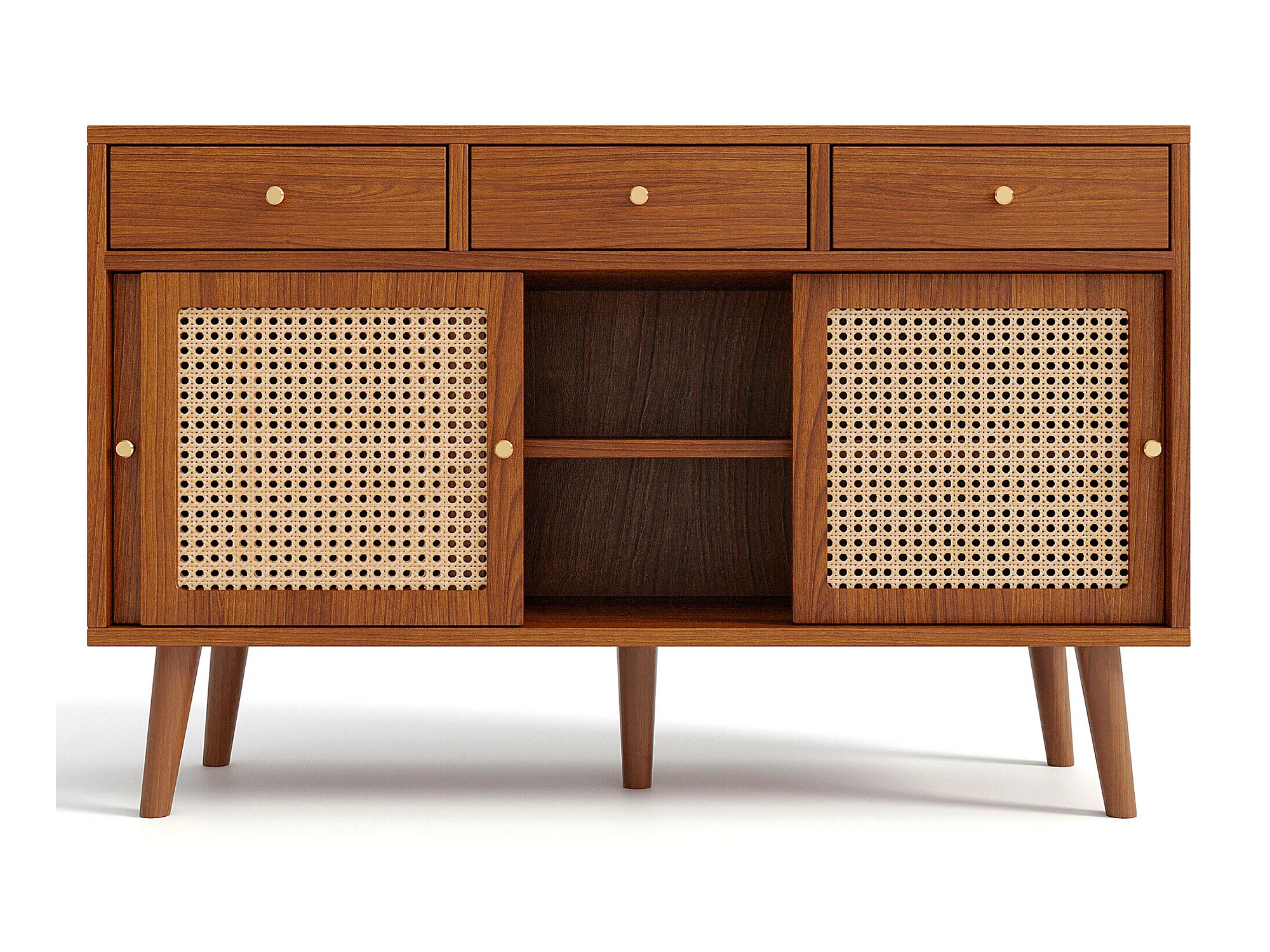 Sideboard mit 3 Schiebetüren und 3 Schubladen aus MDF – Rattan-Effekt – Walnussfarbe