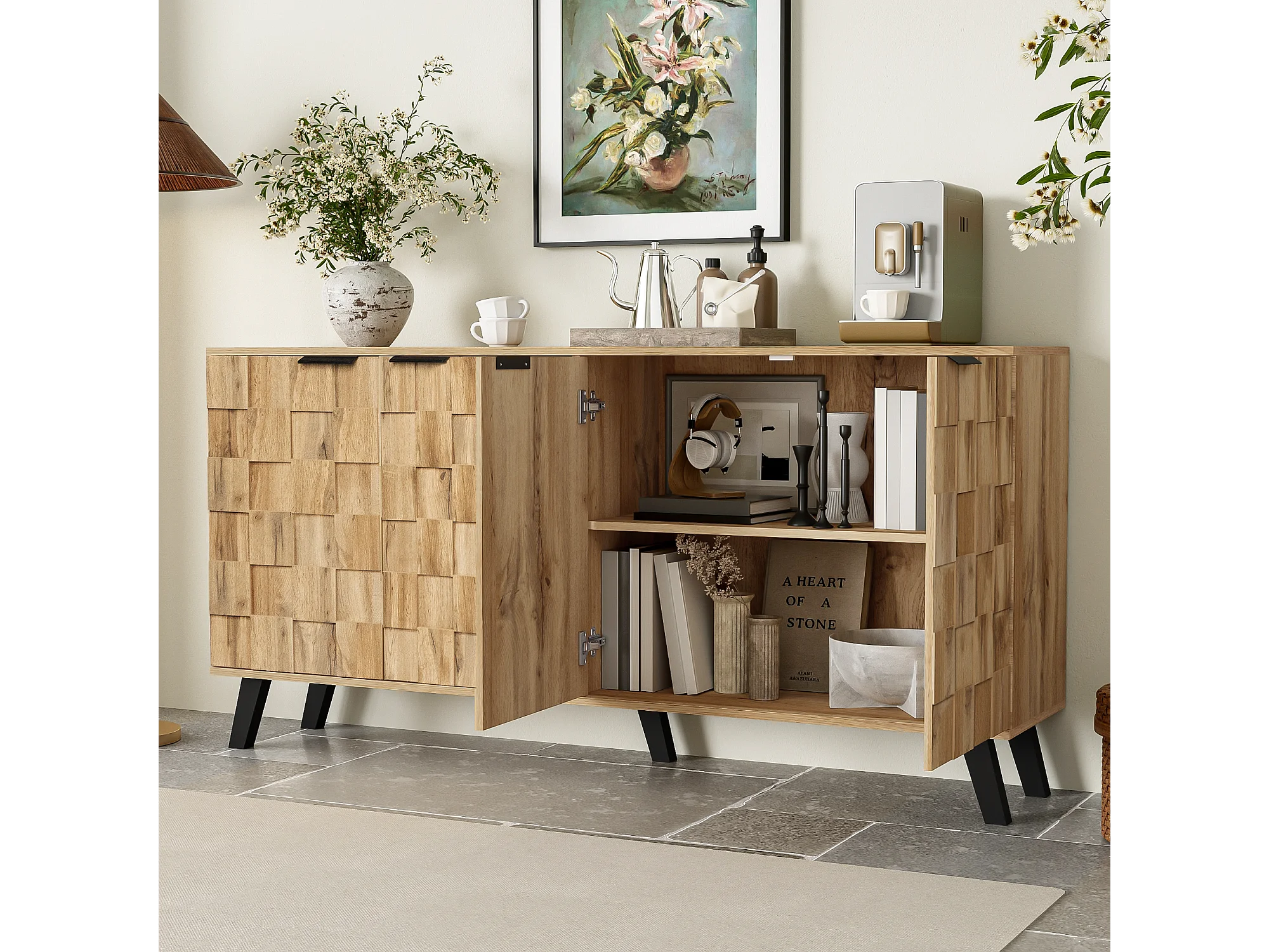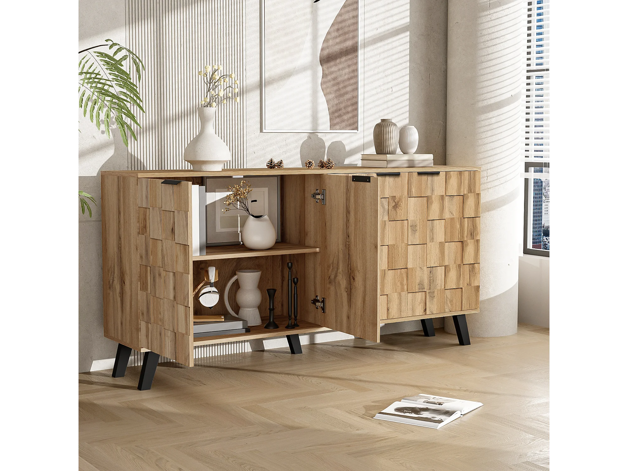 Sideboard mit 4 Türen – Spanplatte – Natur