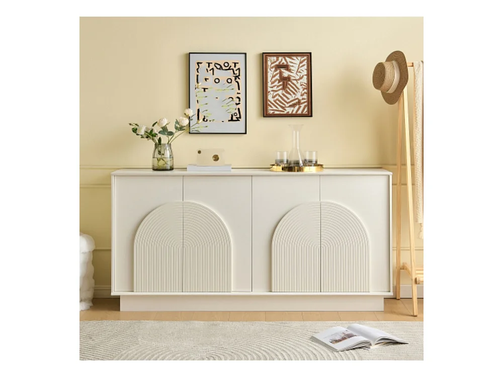 Sideboard mit gewölbten Türen, Kommode 4-Türiger Aufbewahrungsschrank für Wohnzimmer & Esszimmer
