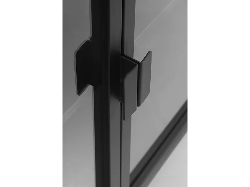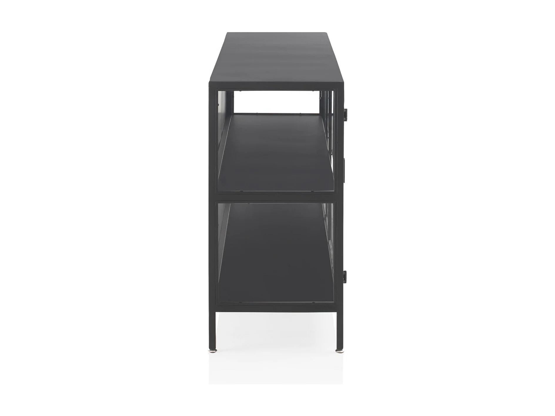 Sideboard mit Glastüren und Glasseiten und schwarzem Metallgestell