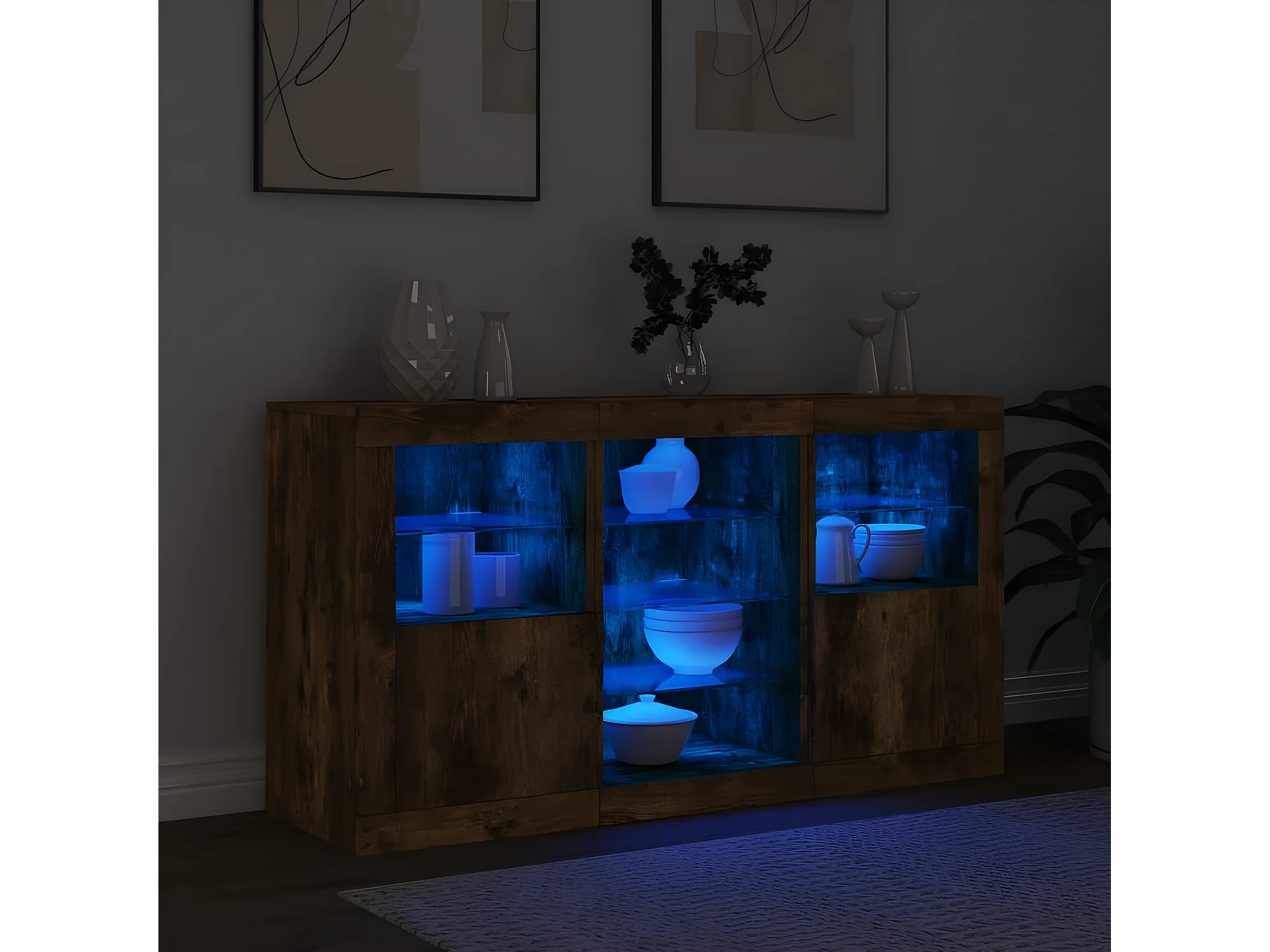 Sideboard mit LED-Leuchten Anrichte Räuchereiche 123x37x67 cm -RM66734