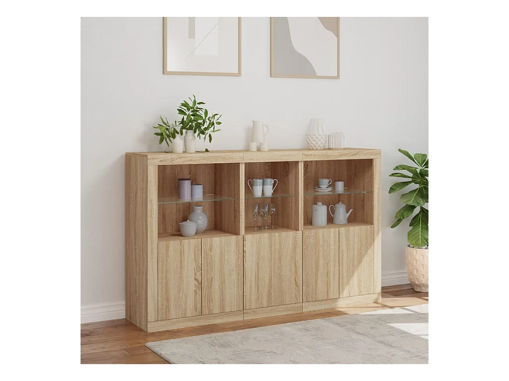 Sideboard mit LED-Leuchten Anrichte Sonoma-Eiche 162x37x100 cm -RM10445