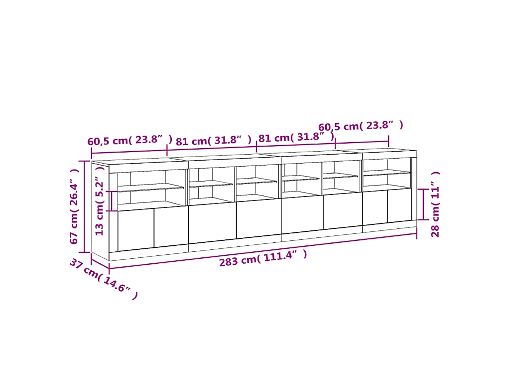 Sideboard mit LED-Leuchten Weiß 283x37x67 cm