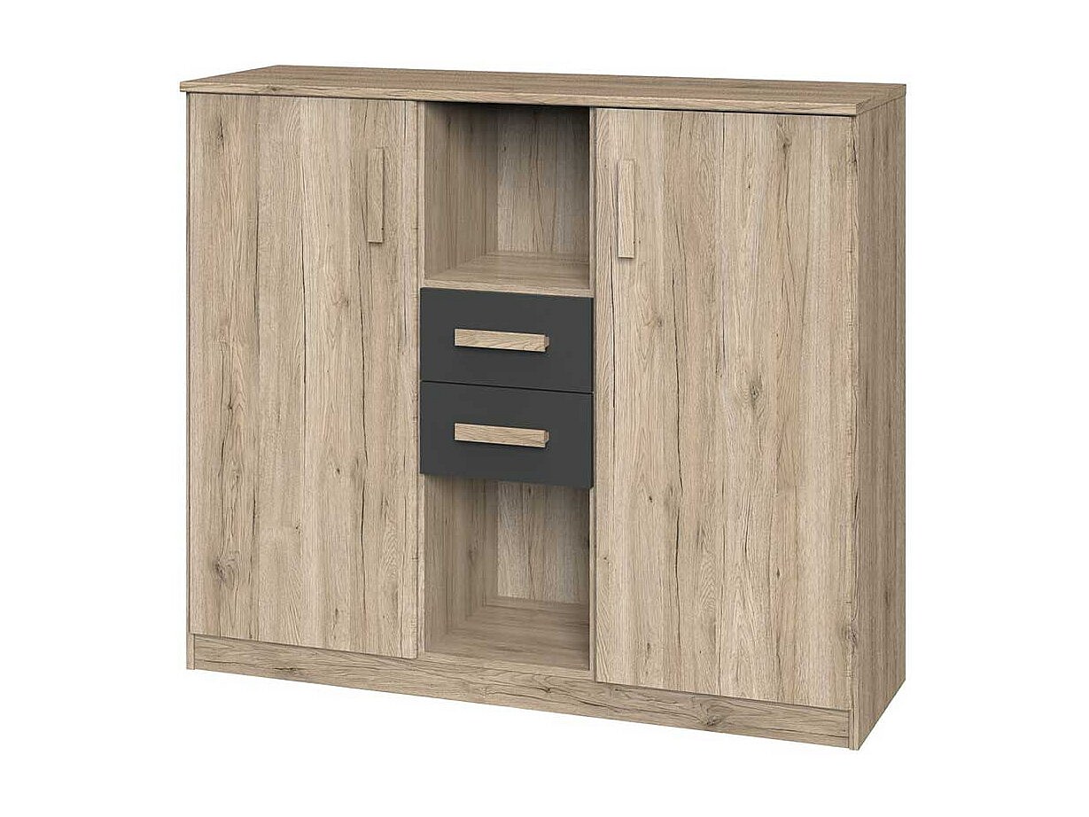 Sideboard mit offenen F�chern in Eiche San Remo Dunkelgrau