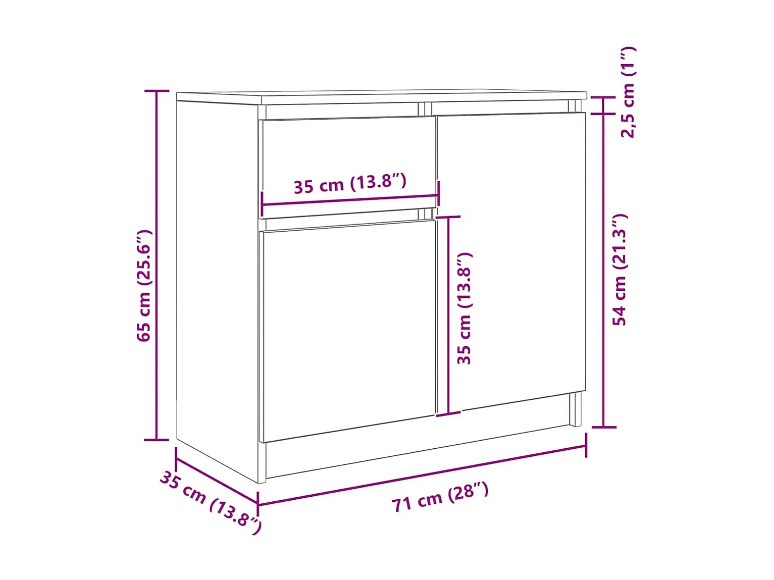 Sideboard mit Schublade Weiß 71x35x65 cm Holzwerkstoff