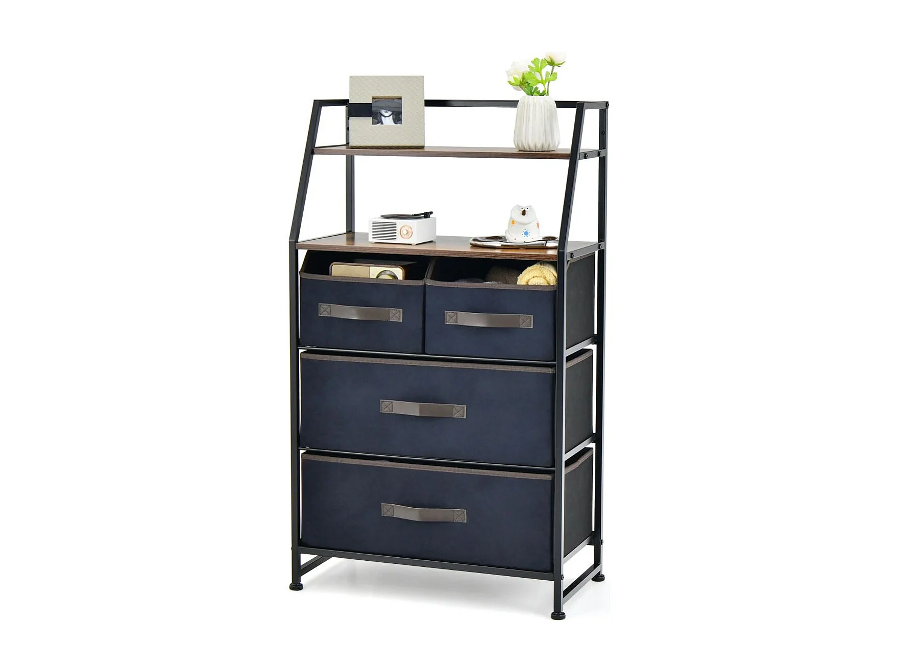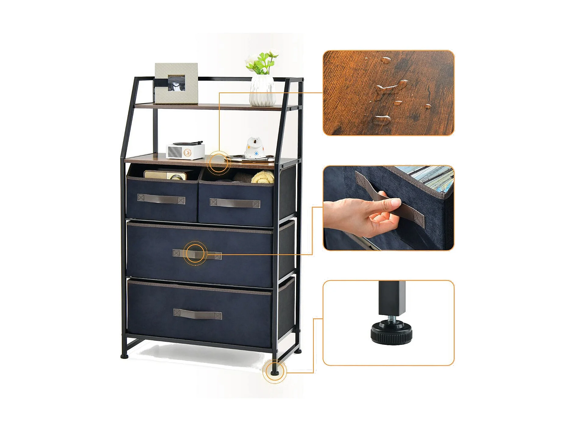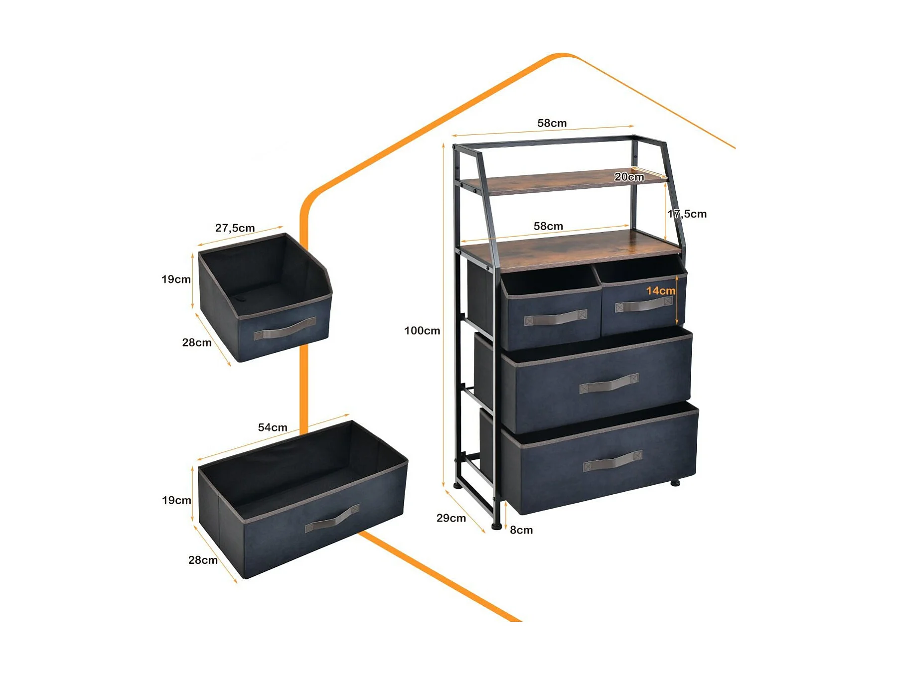 4 Schubladen Sideboard mit Stoffschubladen Stoffkommode 58 x 29 x 100 cm