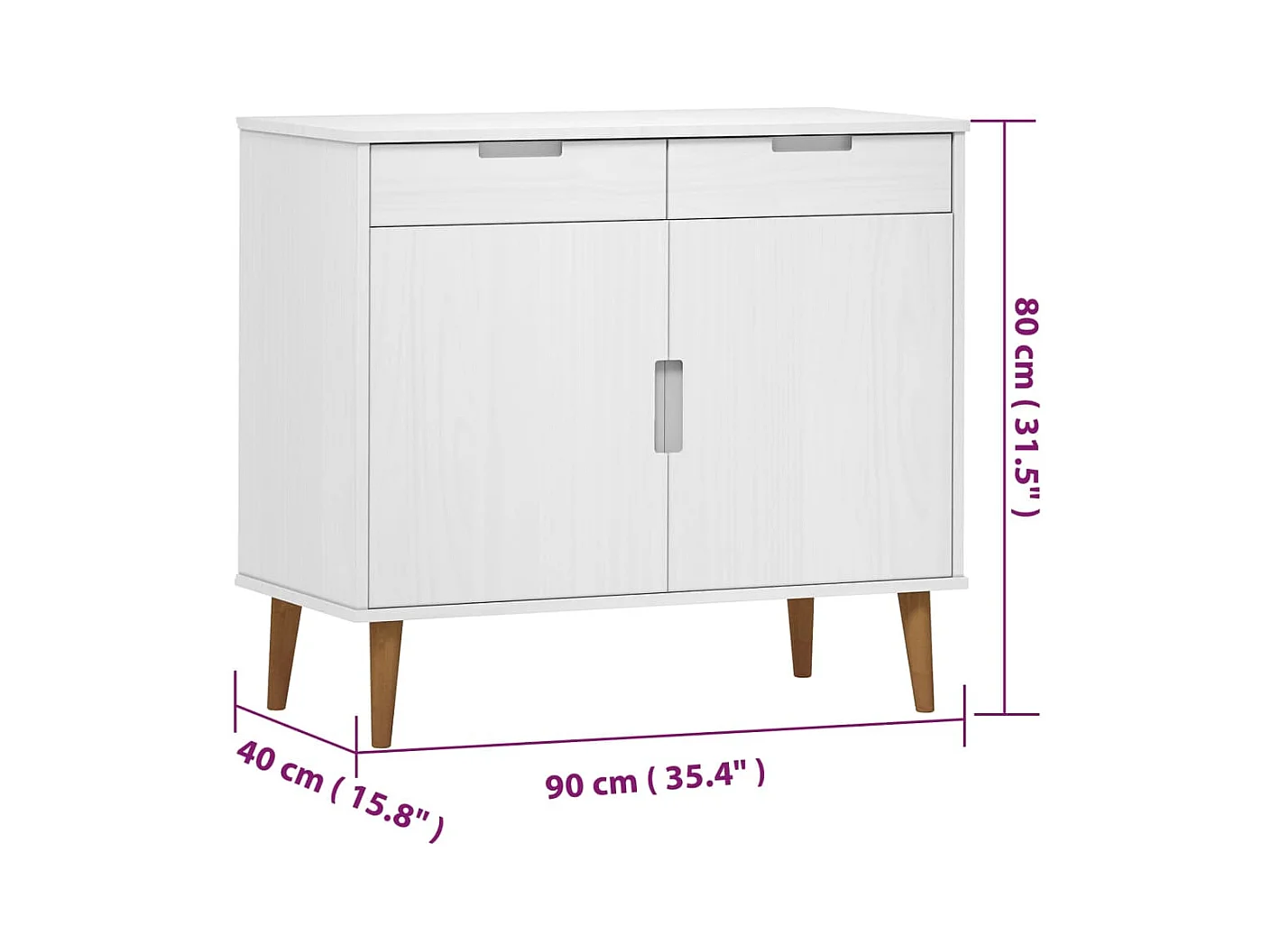 Sideboard MOLDE Weiß 90x40x80 cm Massivholz Kiefer