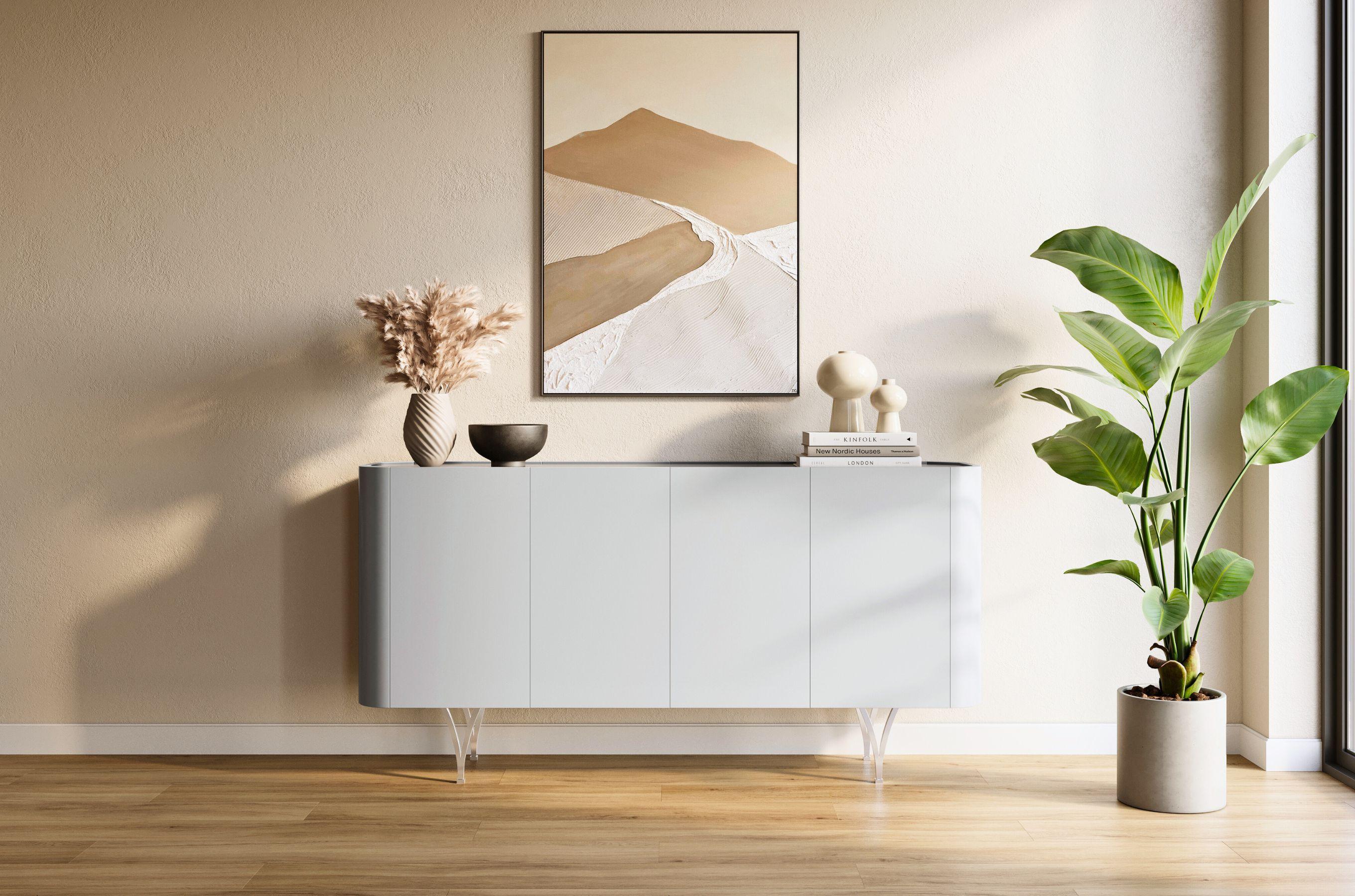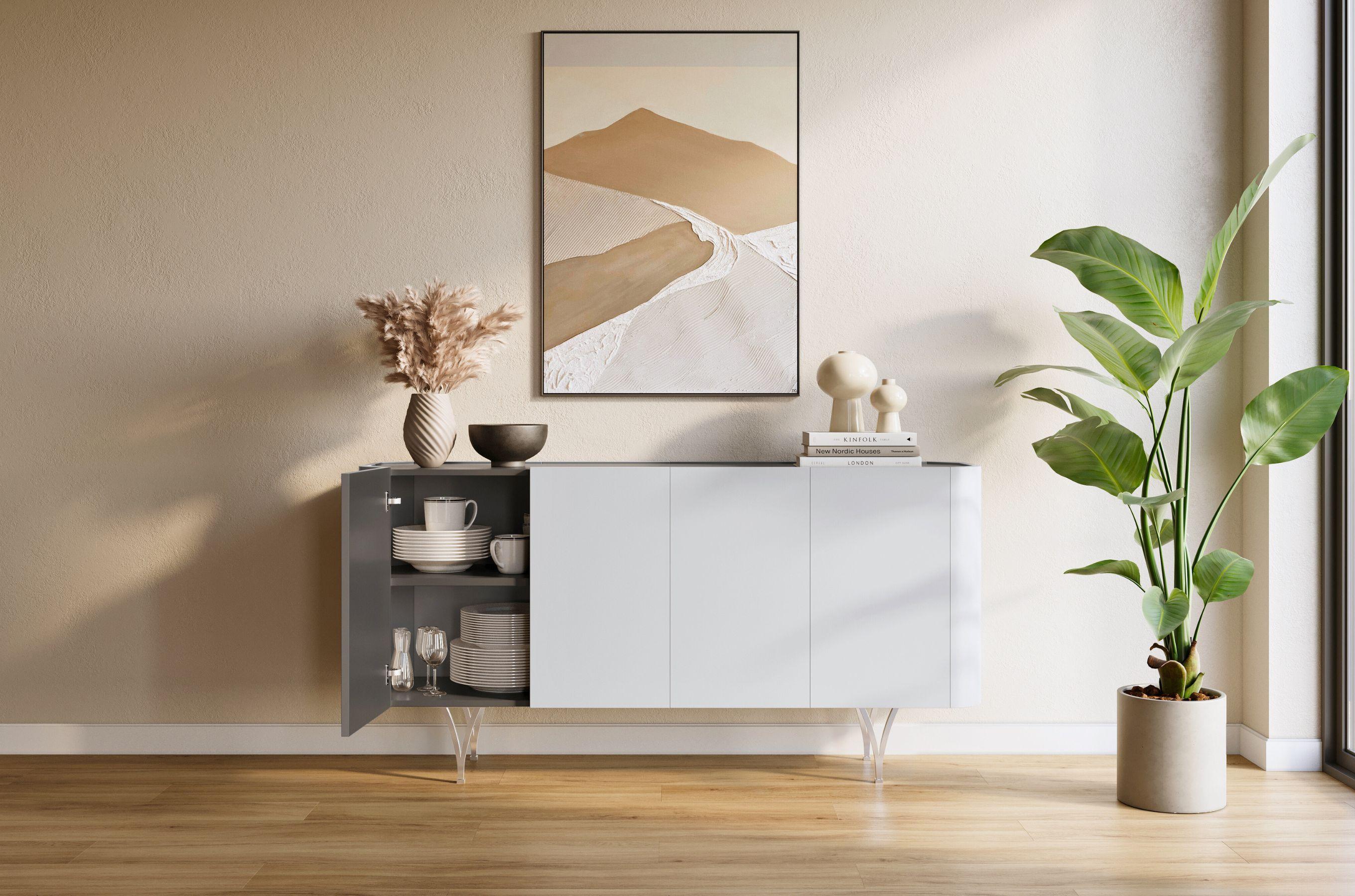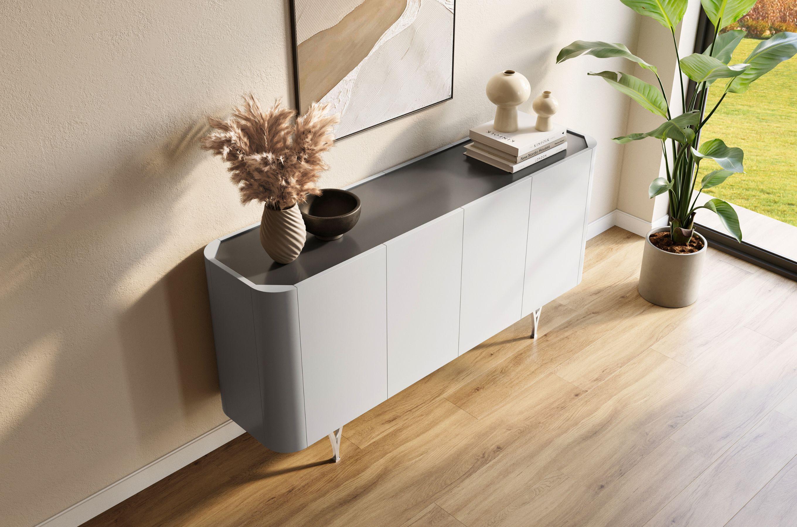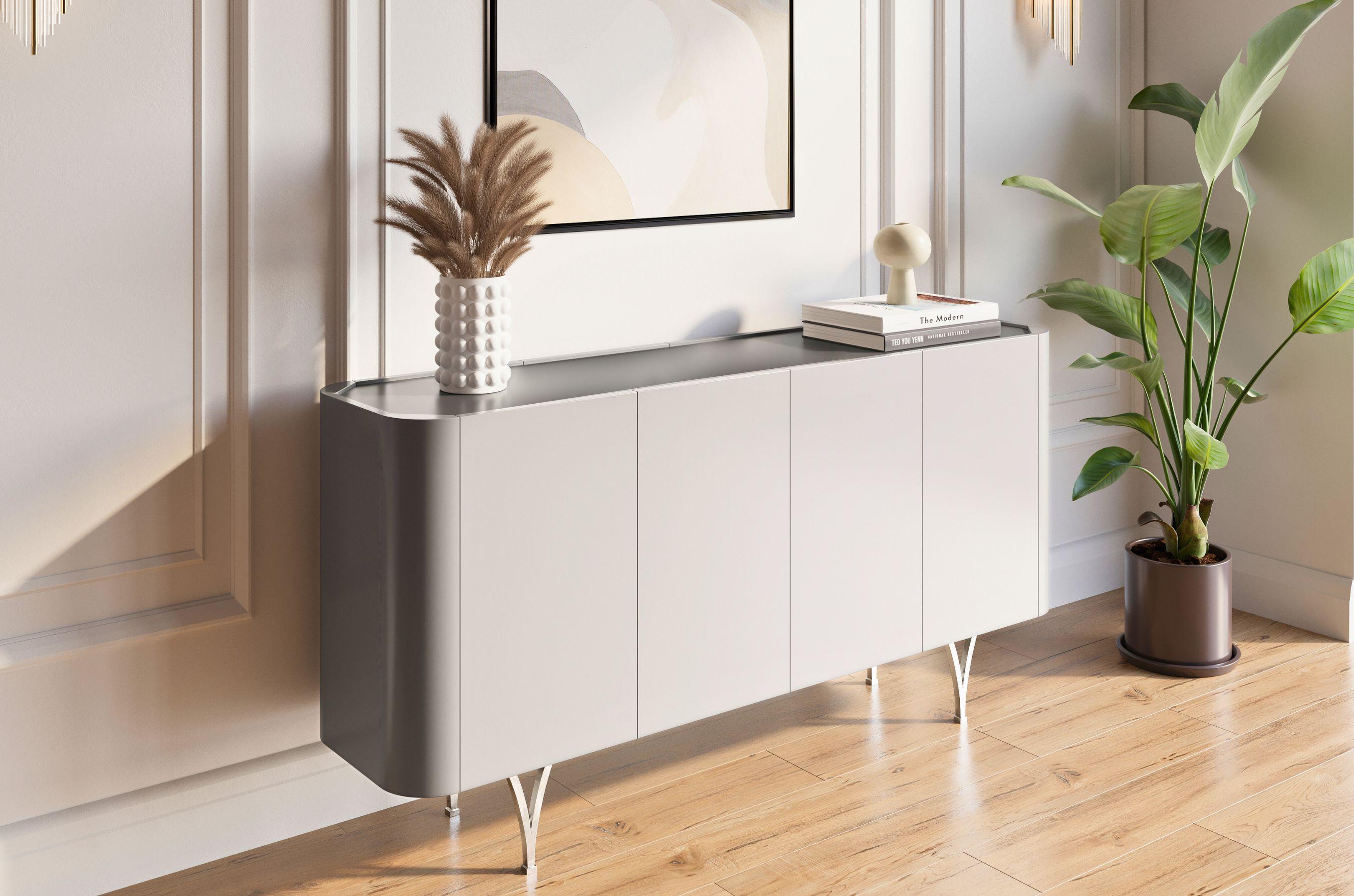 Sideboard Monza, grau/schwarz, silberne beine
