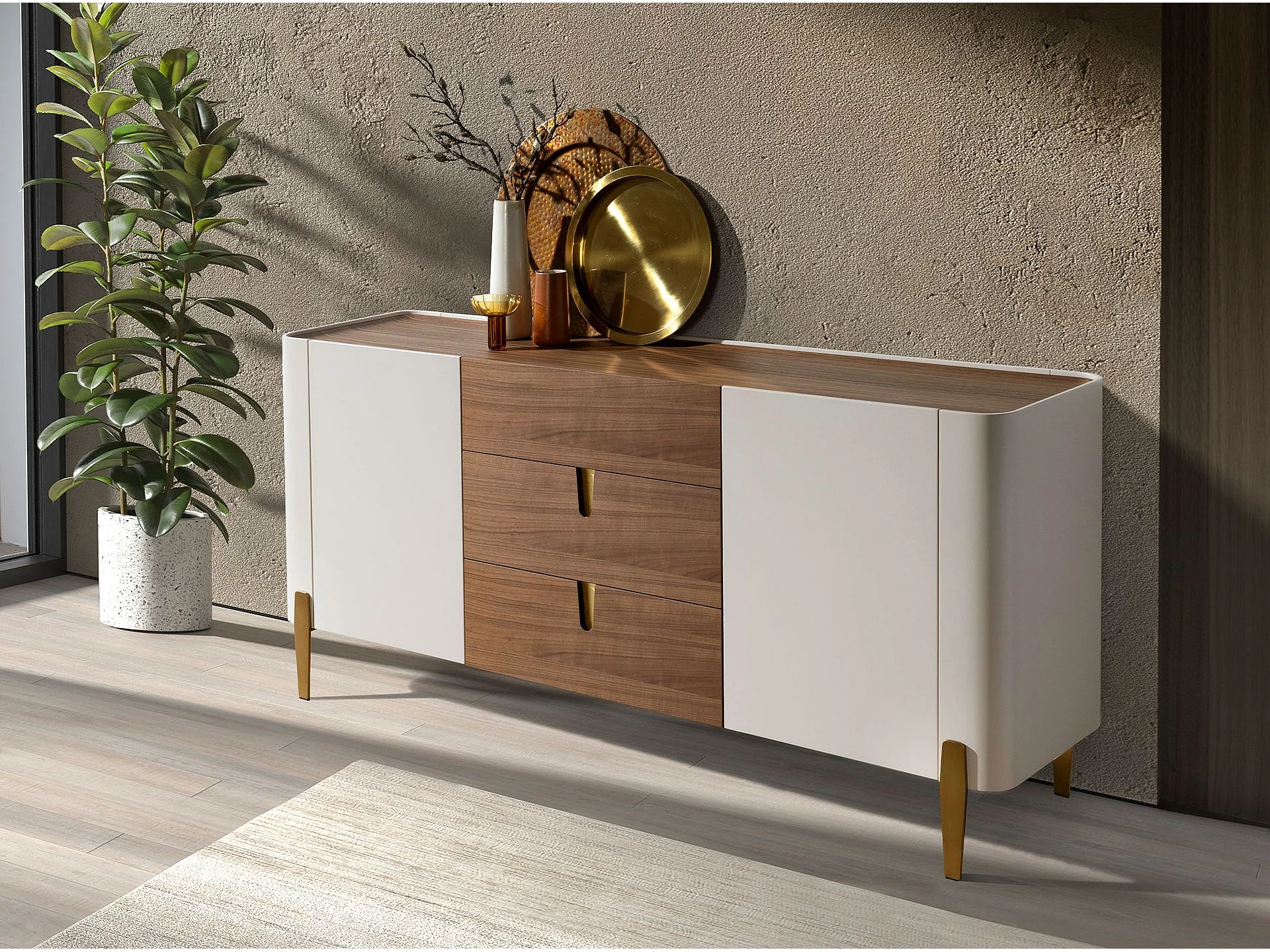 Sideboard Nussbaum, beige, vergoldeter polierter Stahl und Nussbaumplatte 3274 ANGEL CERDA