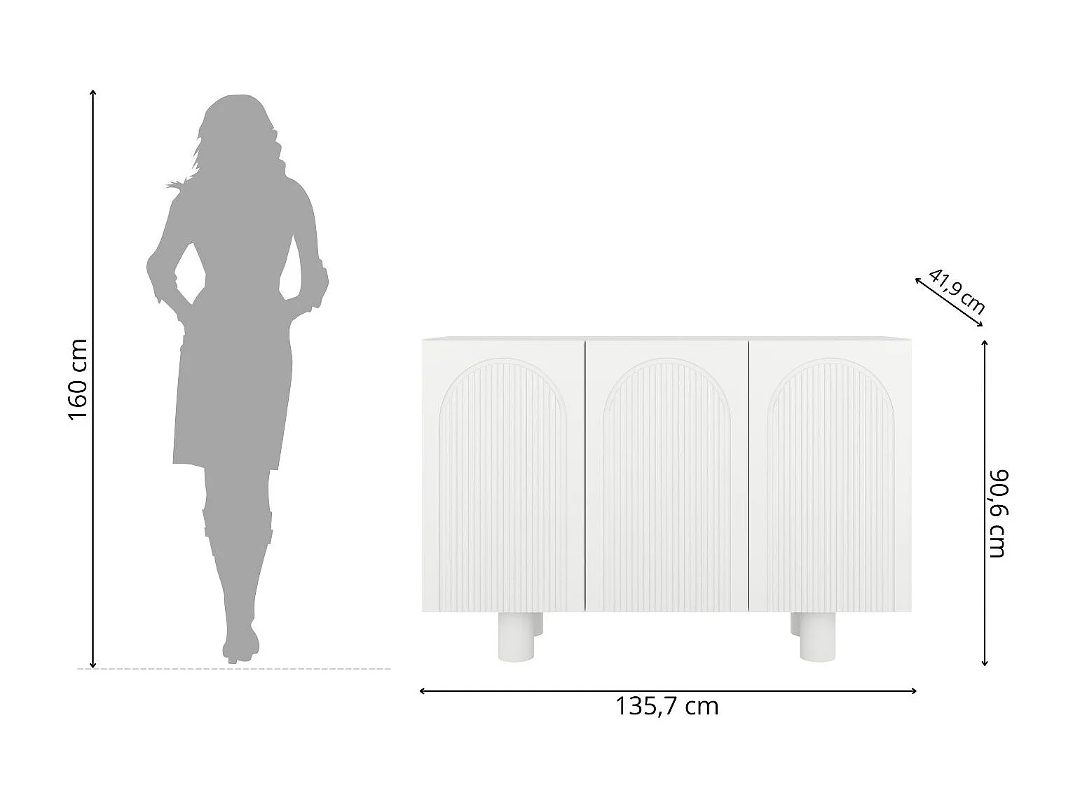 Sideboard Rita, mit gefrästen fronten, 130 cm, weiß