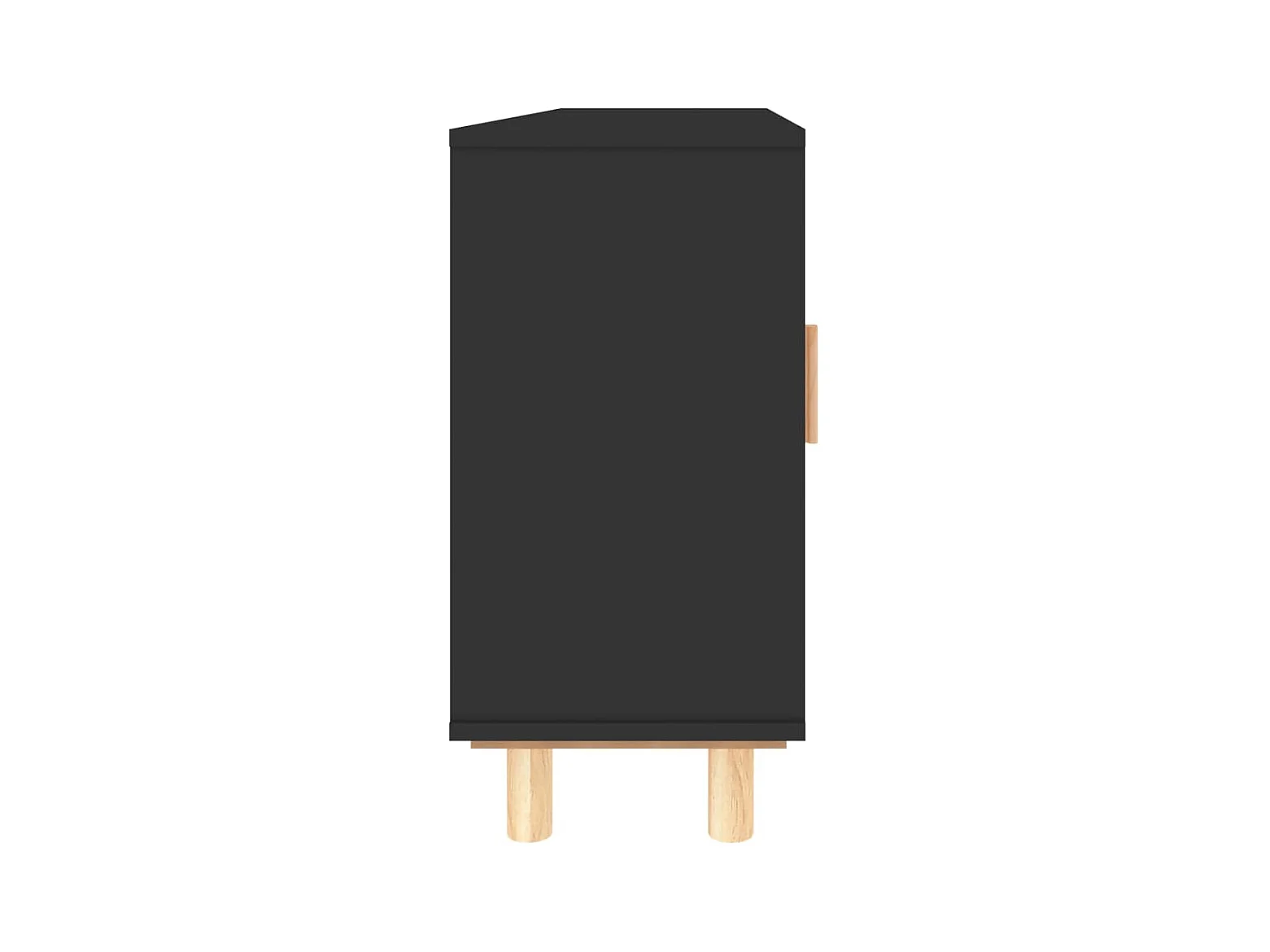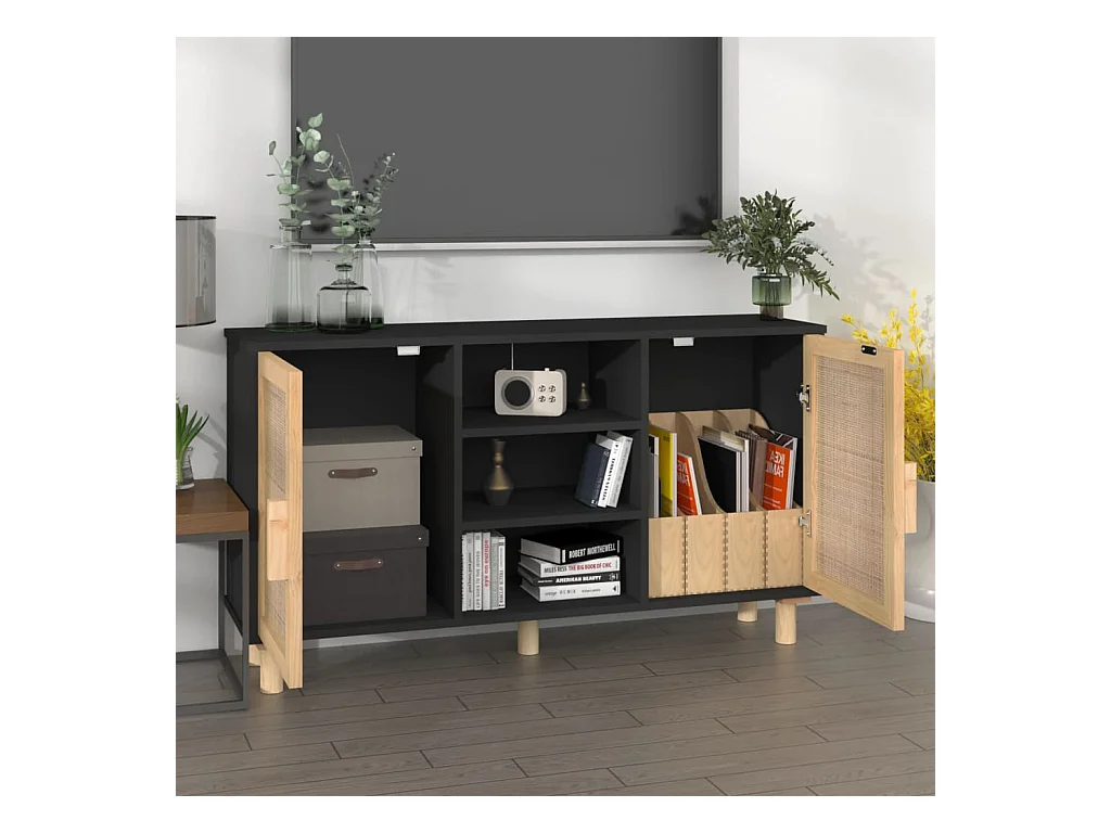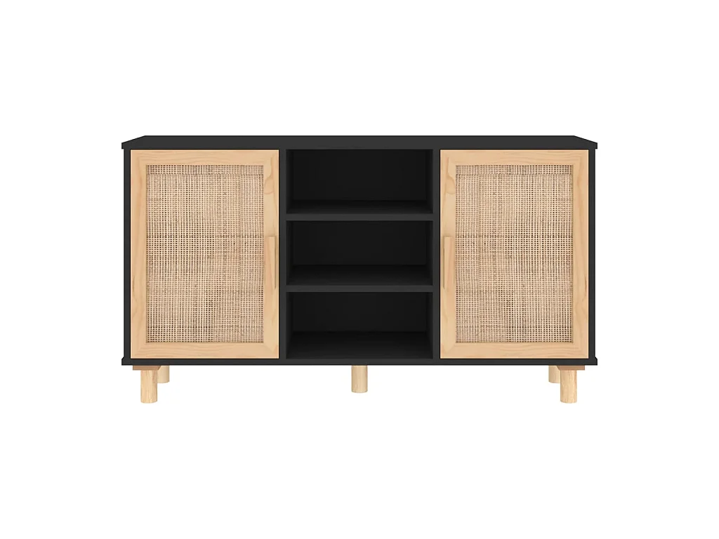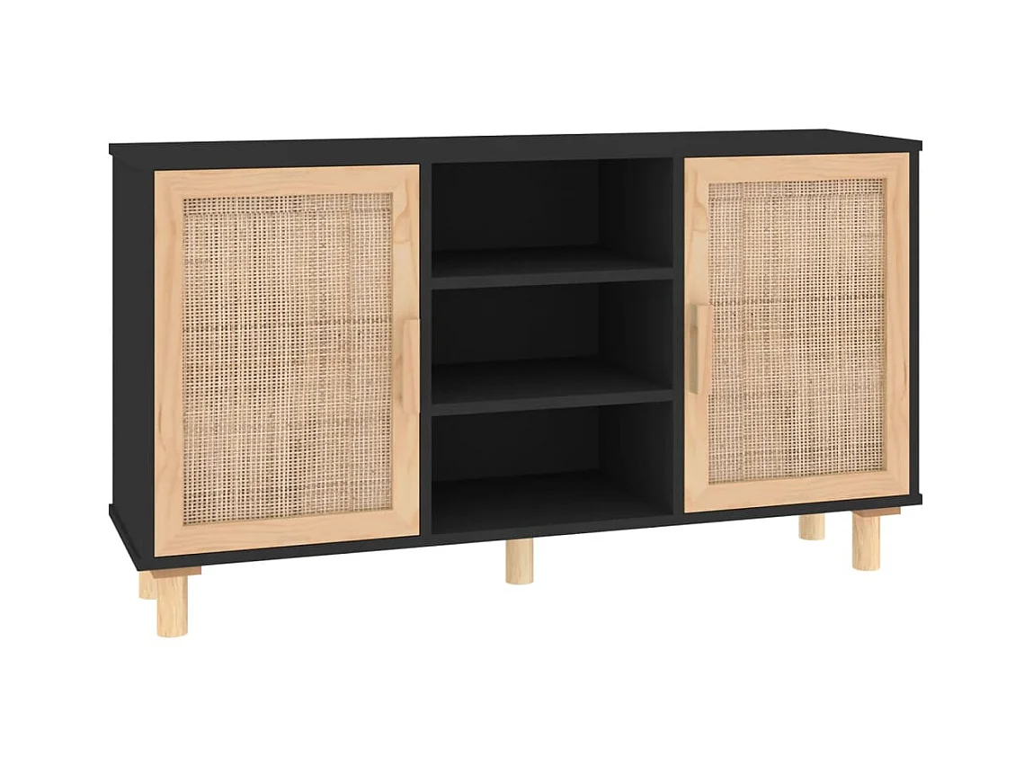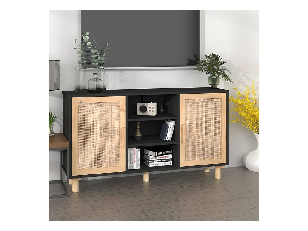 Sideboard Schwarz Anrichte 105x30x60 cm Massivholz Kiefer Natur-Rattan -RM66793