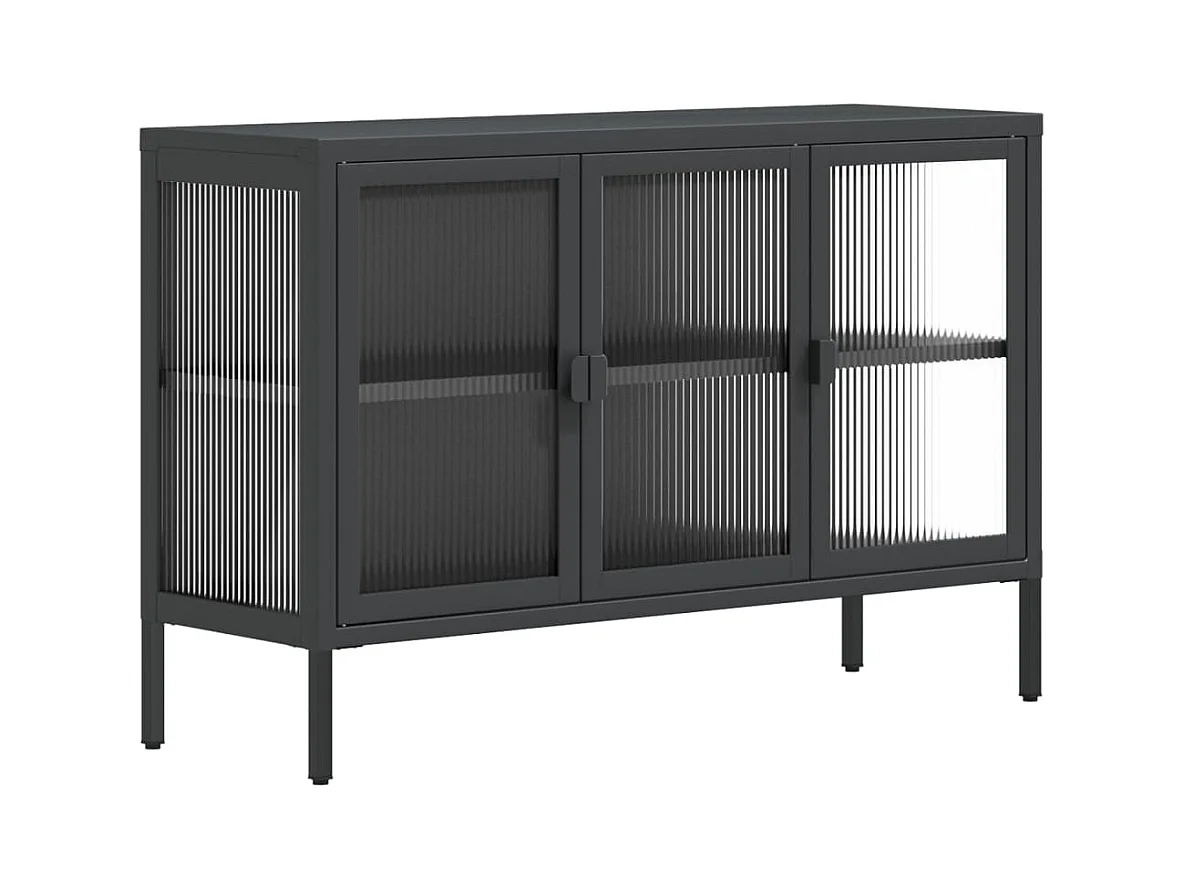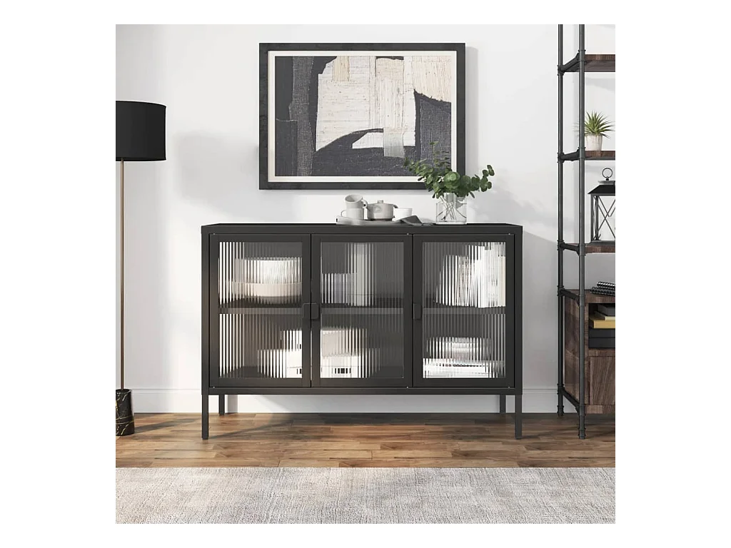 Sideboard Schwarz Anrichte 105x35x70 cm Glas und Stahl -RM96360