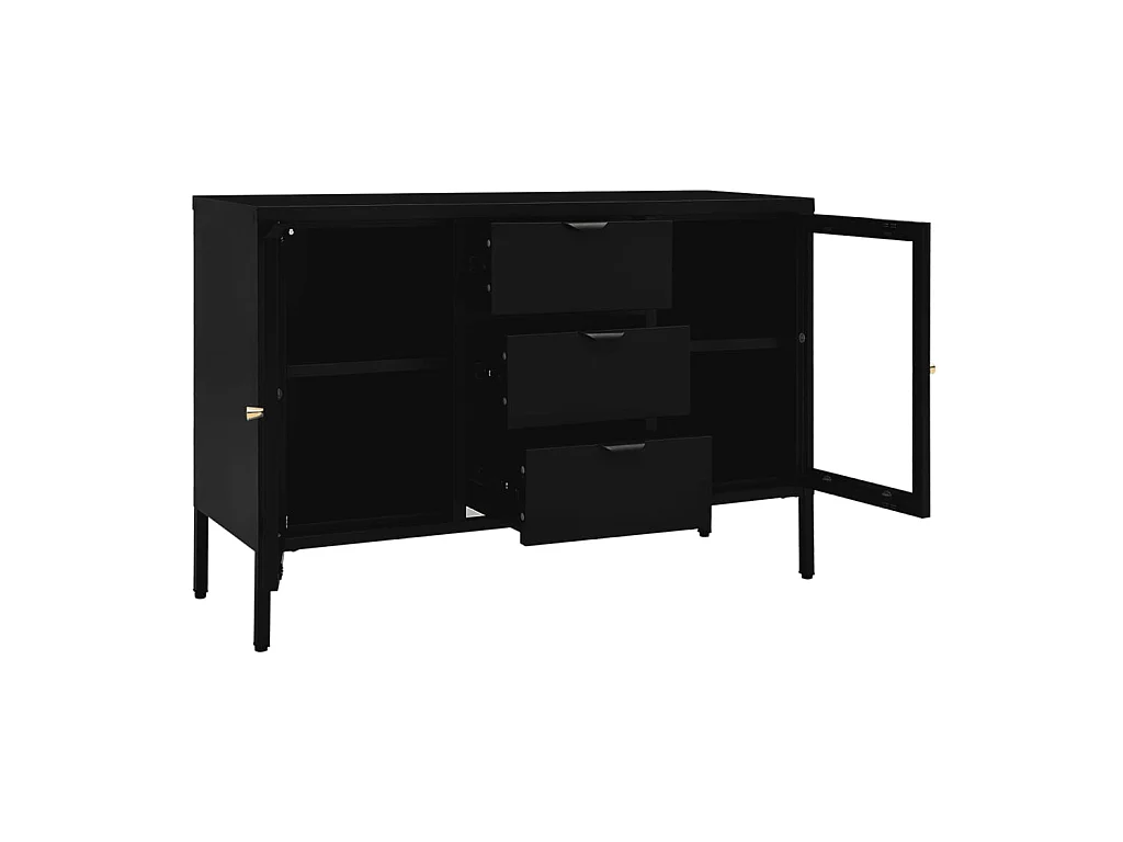 Sideboard Schwarz Anrichte 105x35x70 cm Stahl und Hartglas -RM99699