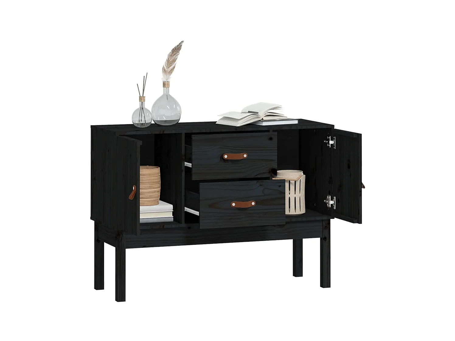 Sideboard Schwarz Anrichte 110x40x78 cm Massivholz Kiefer -RM78069