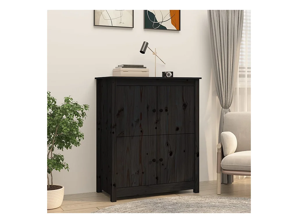 Sideboard Schwarz Anrichte 83x41,5x100 cm Massivholz Kiefer -RM49780