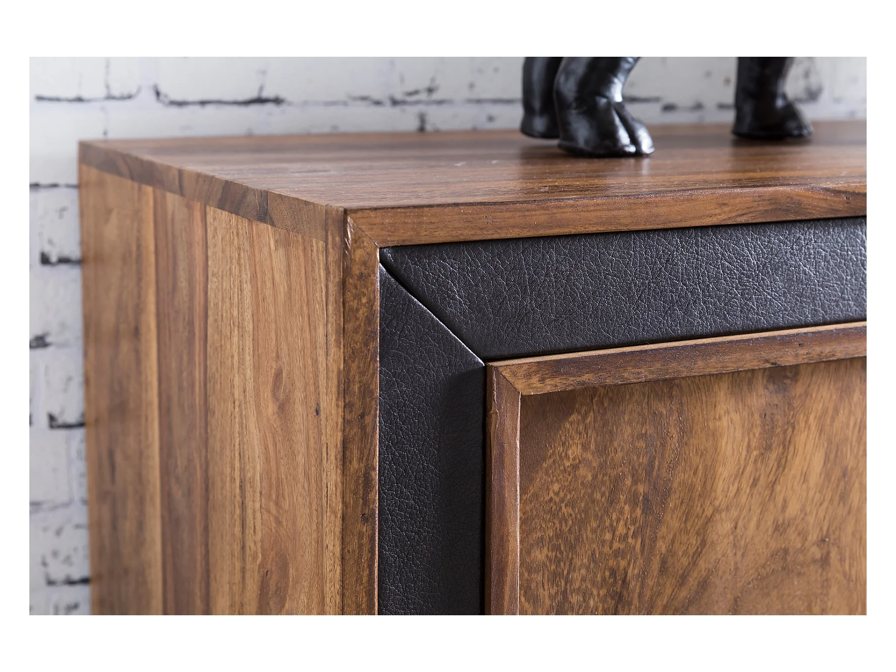 Sideboard Sheesham Massivholz Kunstleder 160cm Kommode Schrank Holz Massiv