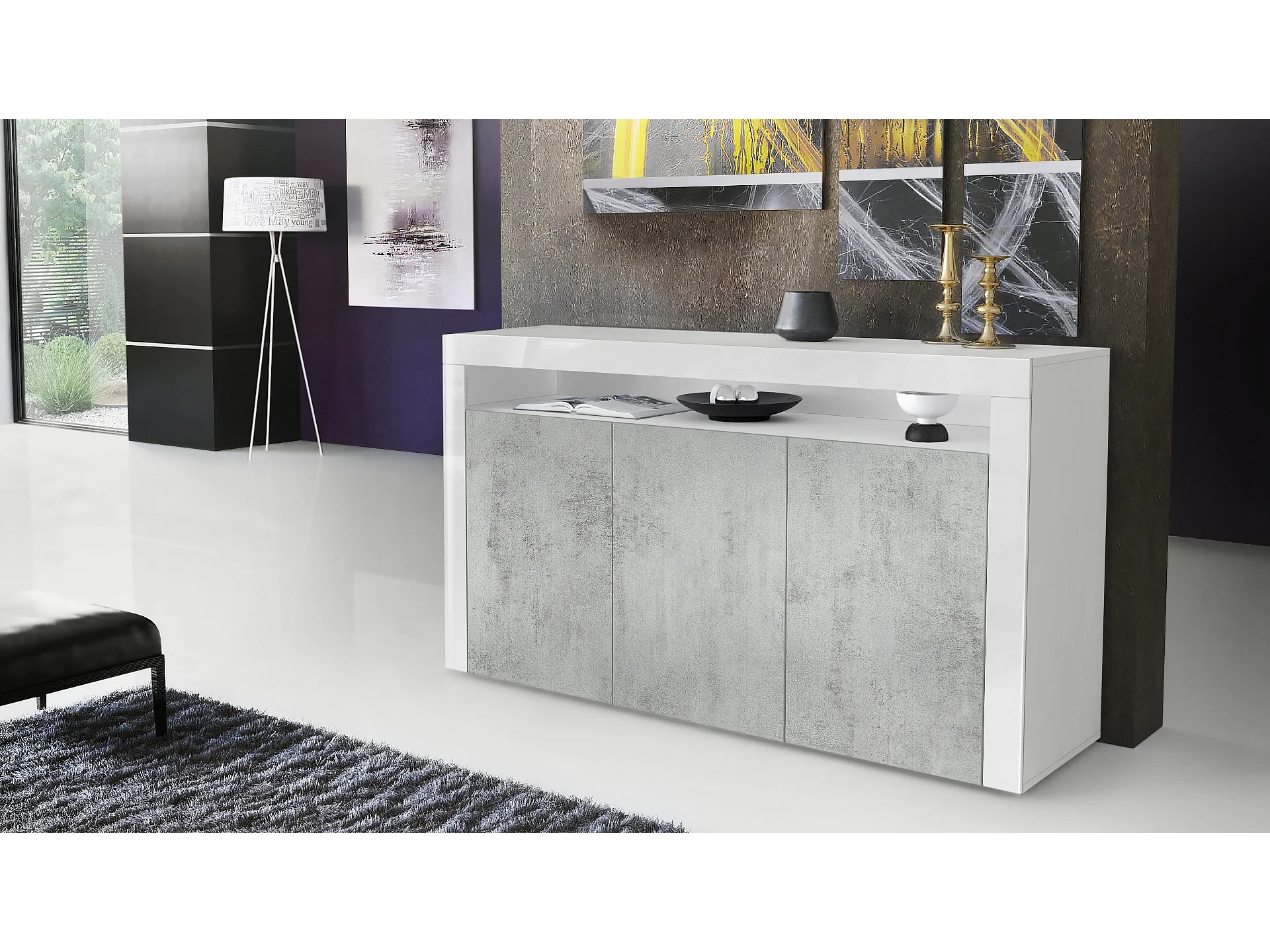 SIDEBOARD Valencia Beton Oxid Optik / Weiß Hochglanz