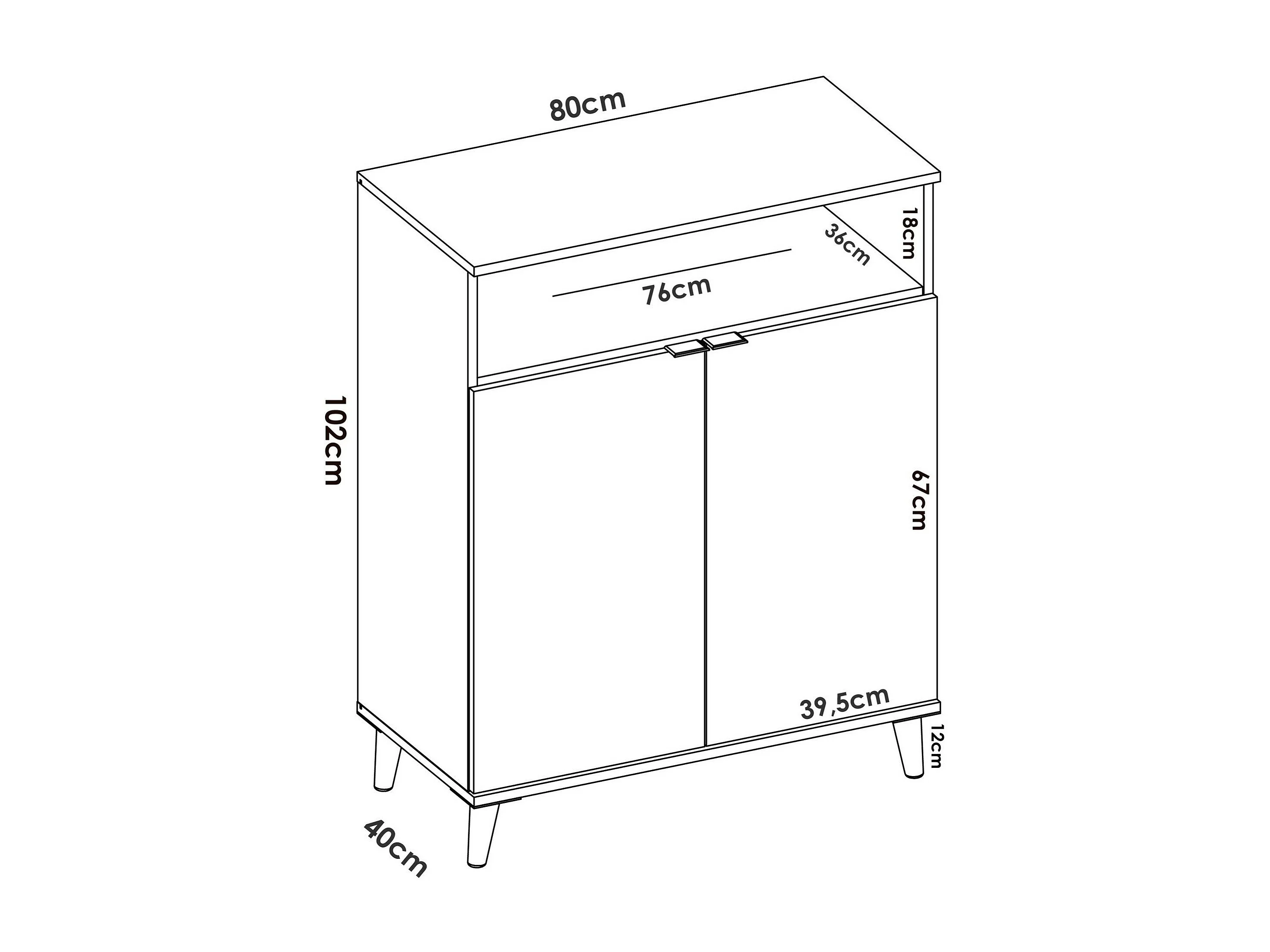 Sideboard Varatella, Wohnzimmer-Pantry-Buffet, modernes Wohnzimmer-Sideboard mit 2 Türen, 80x40h102 cm, Weiß und Eiche