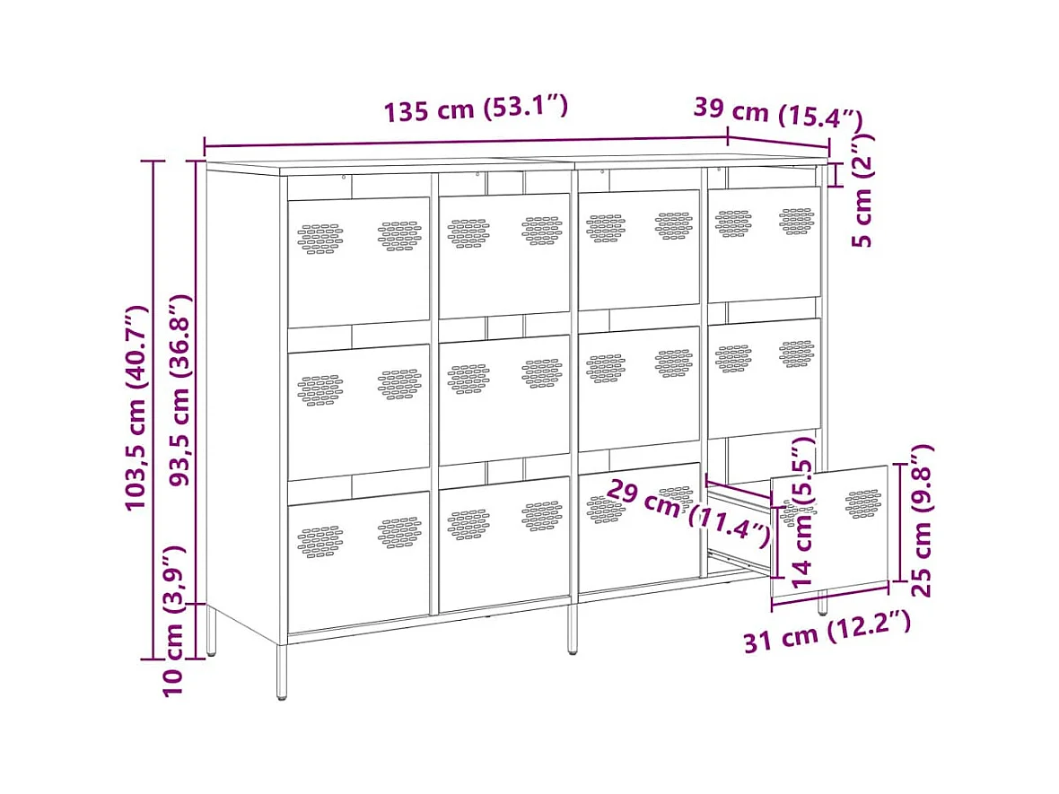 Sideboard Weiß 135x39x103,5 cm Kaltgewalzter Stahl