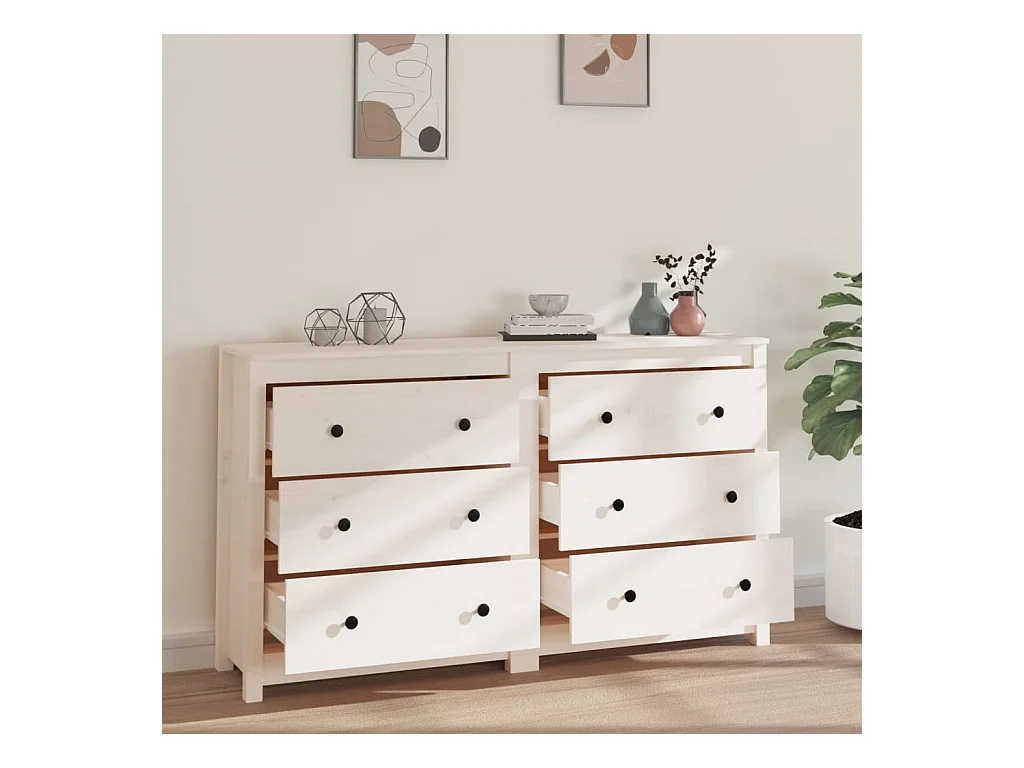 Sideboard Weiß Anrichte 140x35x80 cm Massivholz Kiefer -RM76744