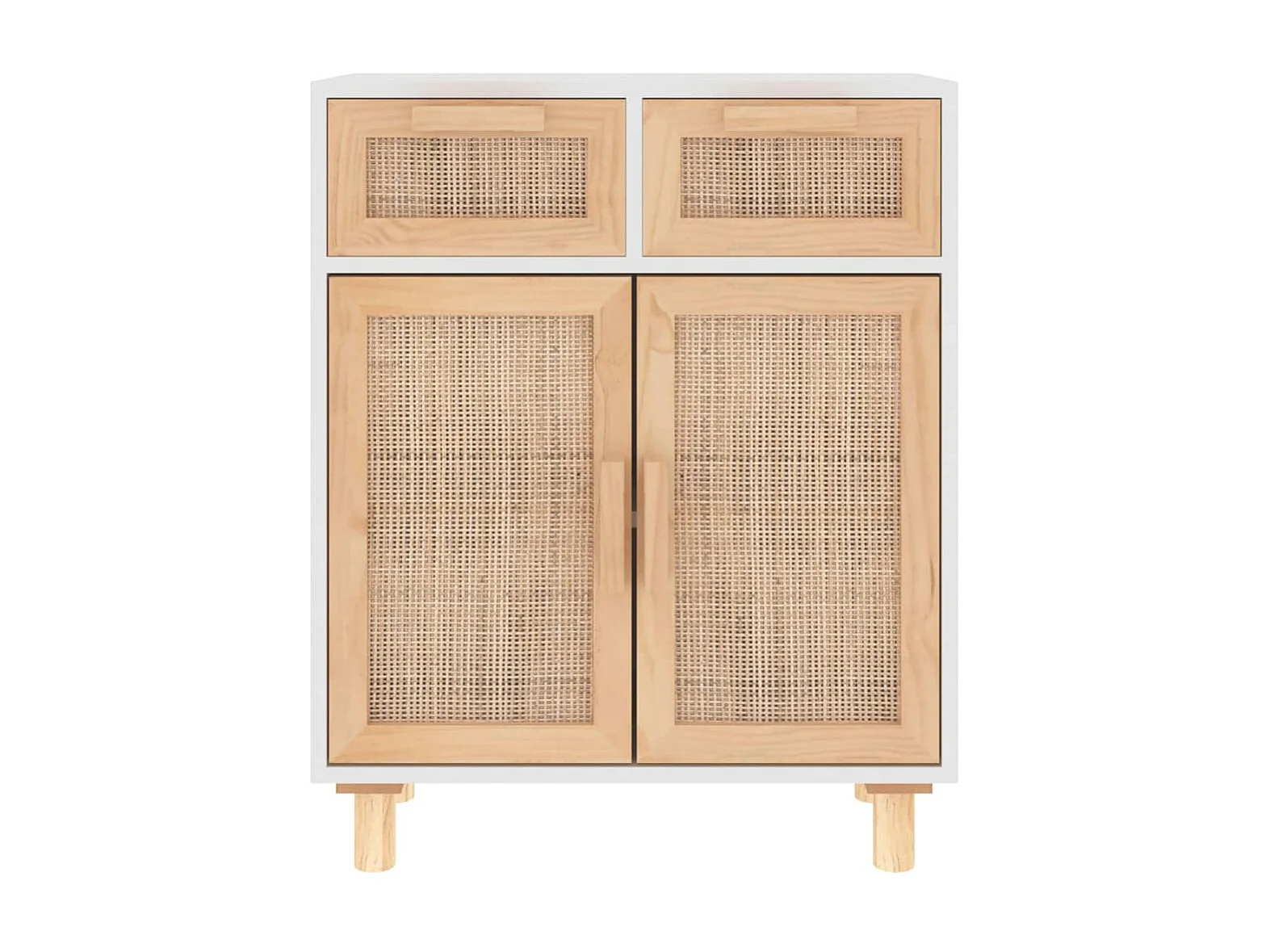 Sideboard Weiß Anrichte 60x30x75 cm Massivholz Kiefer und Natur-Rattan -RM66163