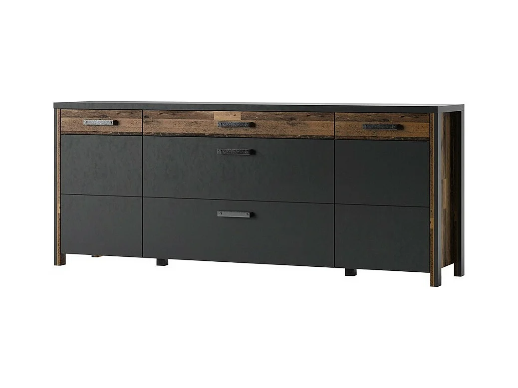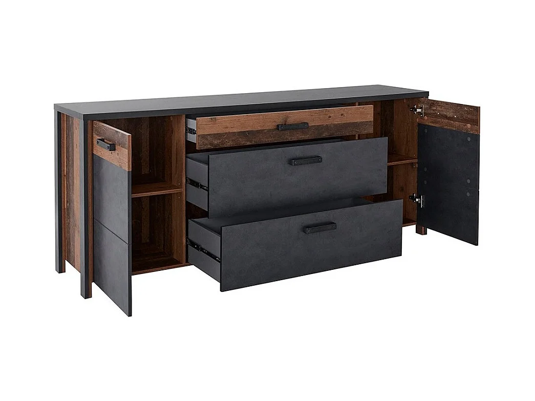 Sideboard WINDSOR anthrazitgrau und dunkle Eiche - 3 Schubladen und 2 Türen - 196,8 x 80,6 x 44 cm