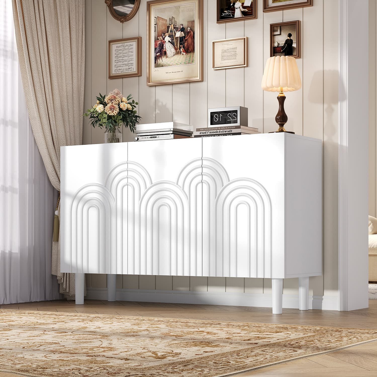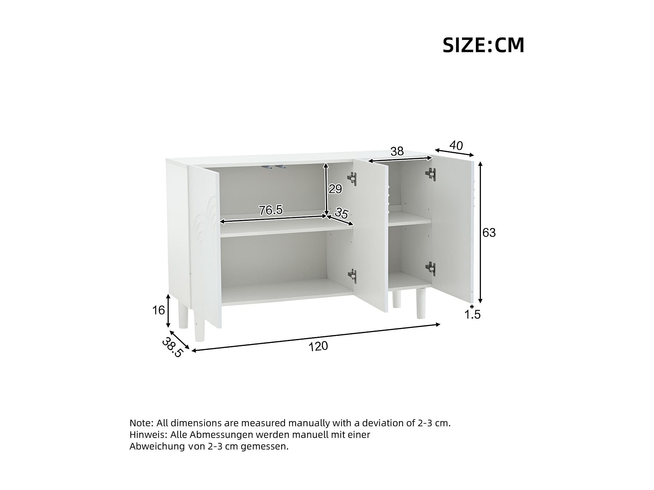 Sideboard,Wohnzimmerschrank mit 3 Türen,Schränke mit großem Stauraum,Kommode für das Schlafzimmer und Wohnzimmer,Verstellbarer Trennwandschrank,MDF