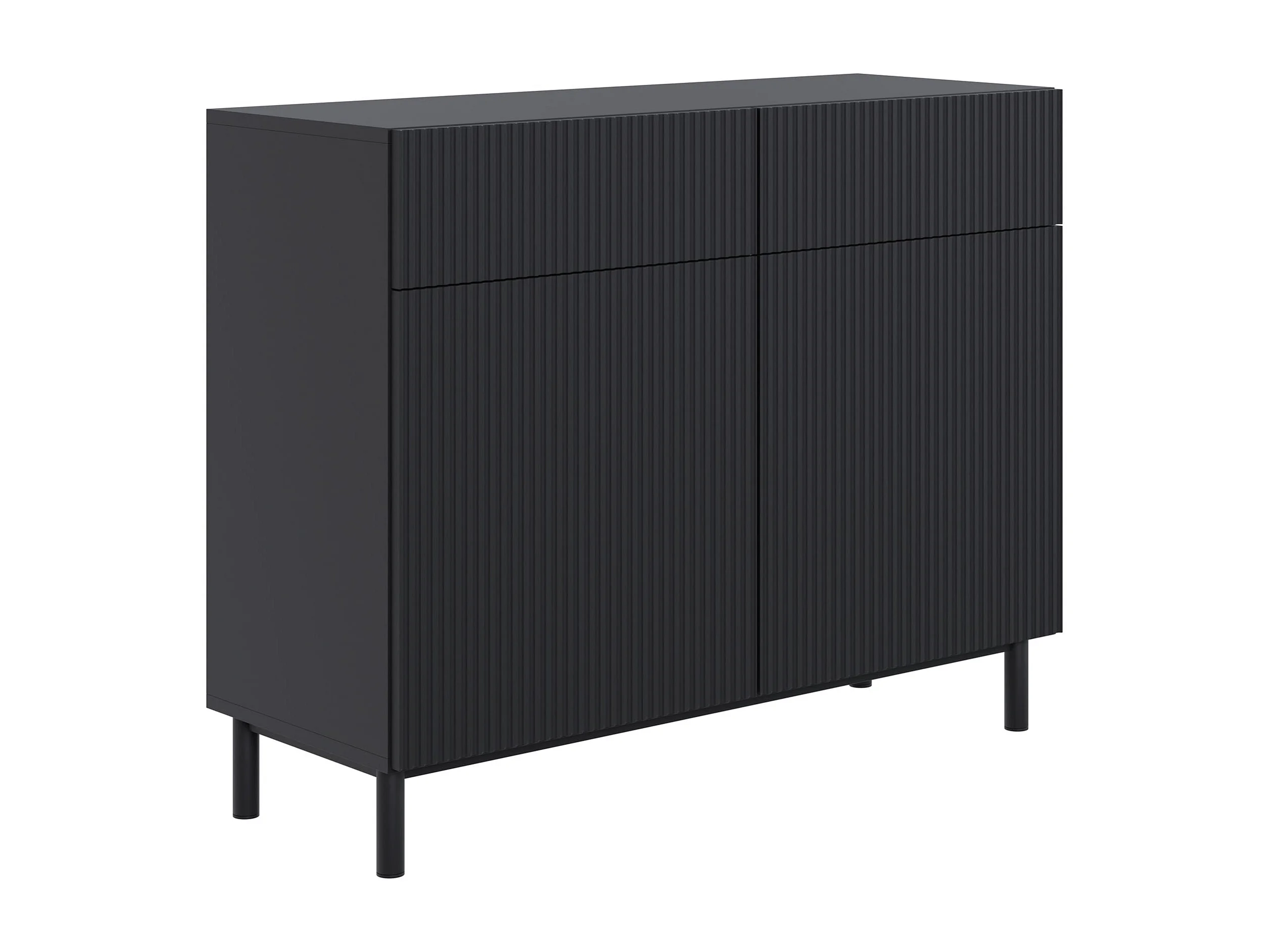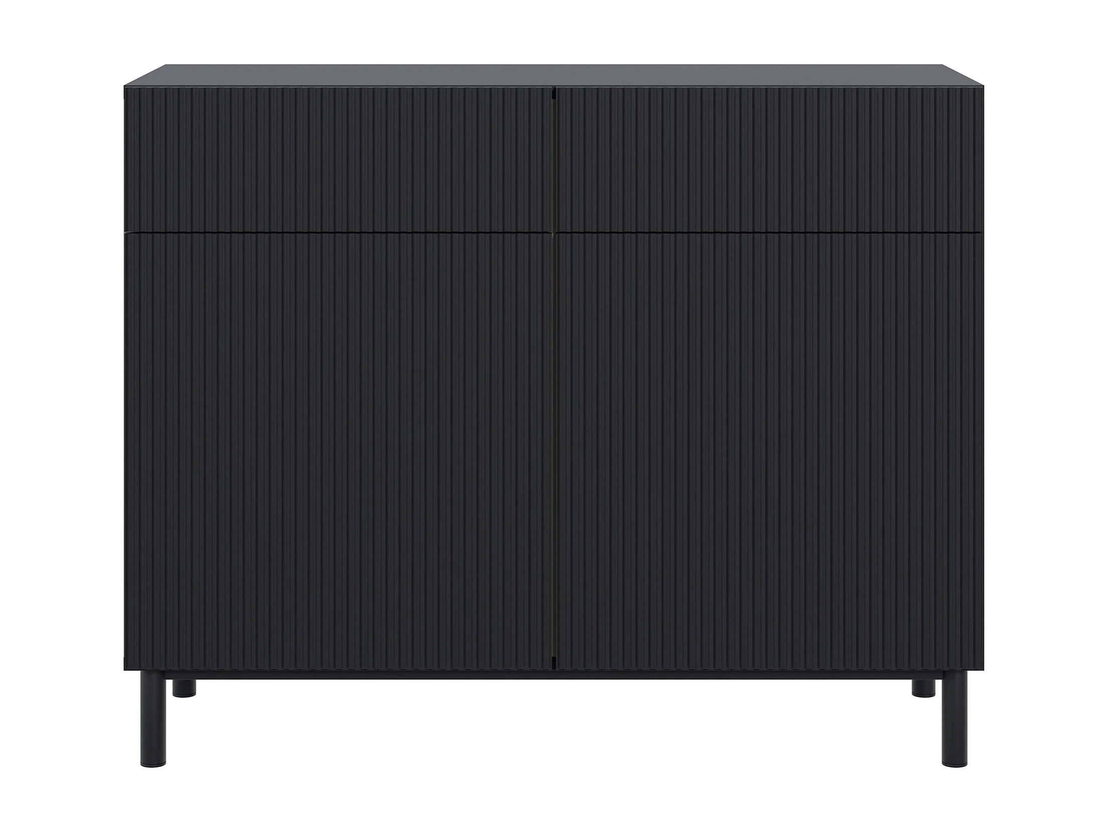 Sideboard zweitürig mit Rillenfront und 2 Schubladen – Schwarz – 100 cm – VELDIO NEW