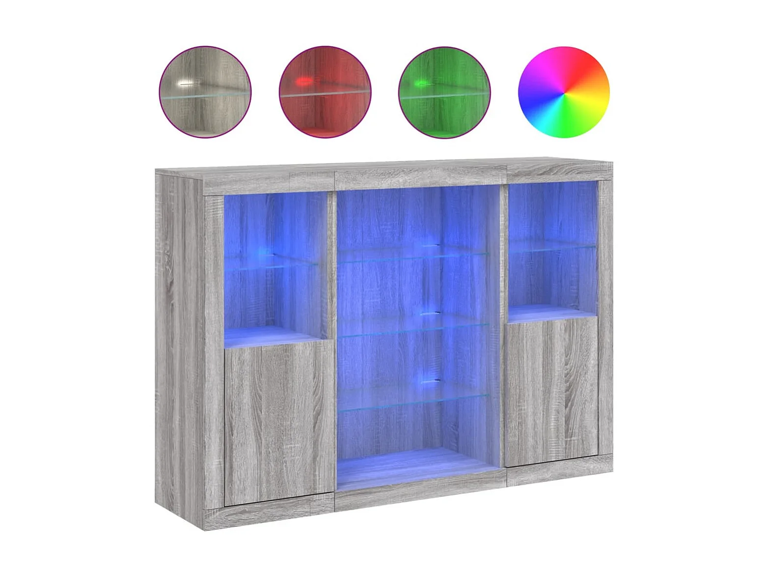 Sideboards Grau Anrichten mit LED-Leuchten im 3er-Set Anrichten Sonoma Holzwerkstoff -RM70683