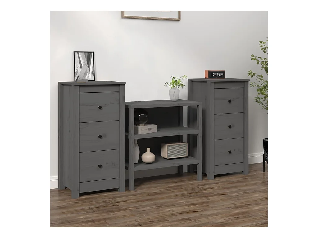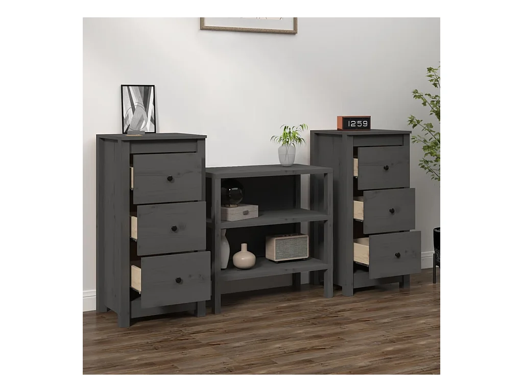 Sideboards Grau im 2er-Set Anrichten 40x35x80 cm Massivholz Kiefer -RM30587