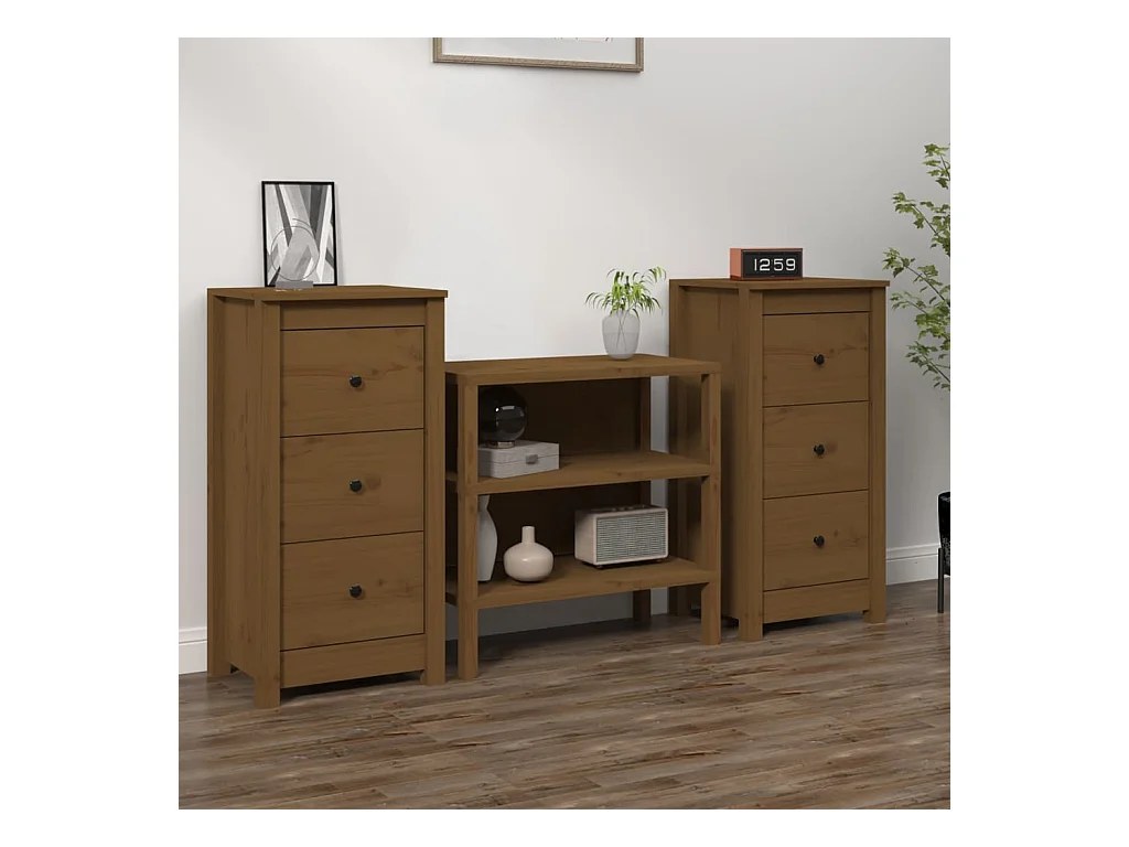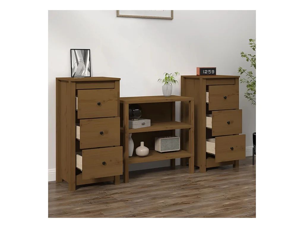 Sideboards im 2er-Set Lowboards Honigbraun 40x35x80 cm Massivholz Kiefer -RM94119