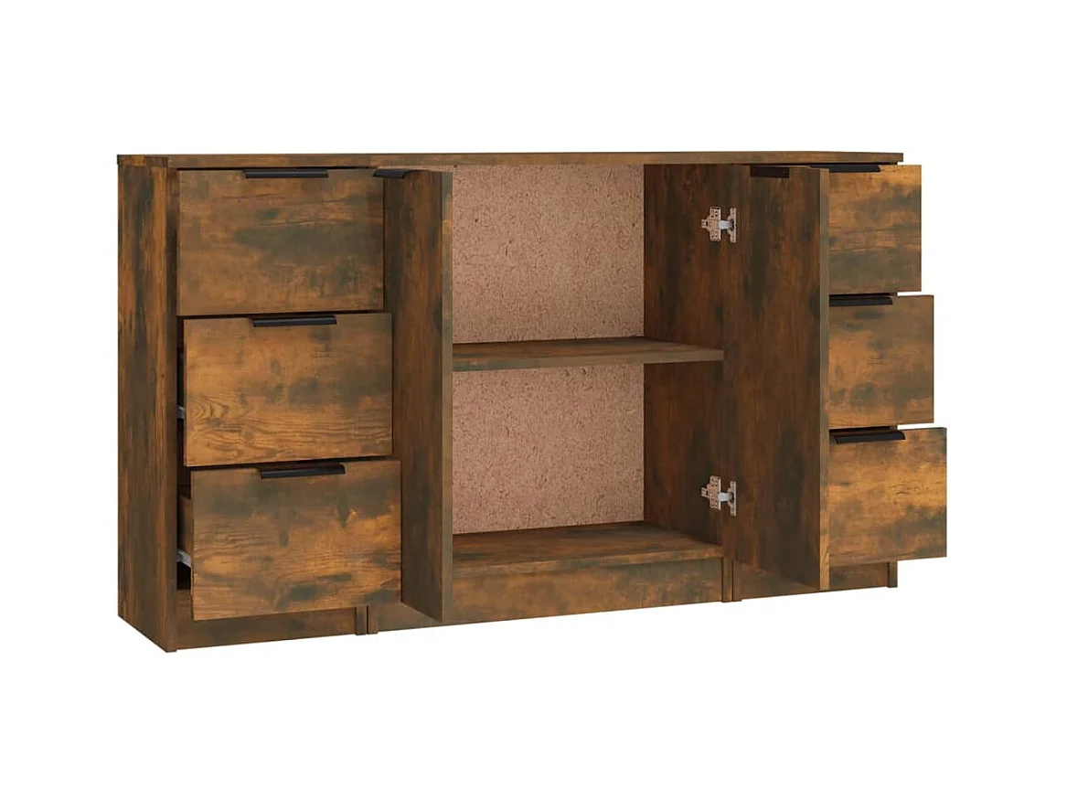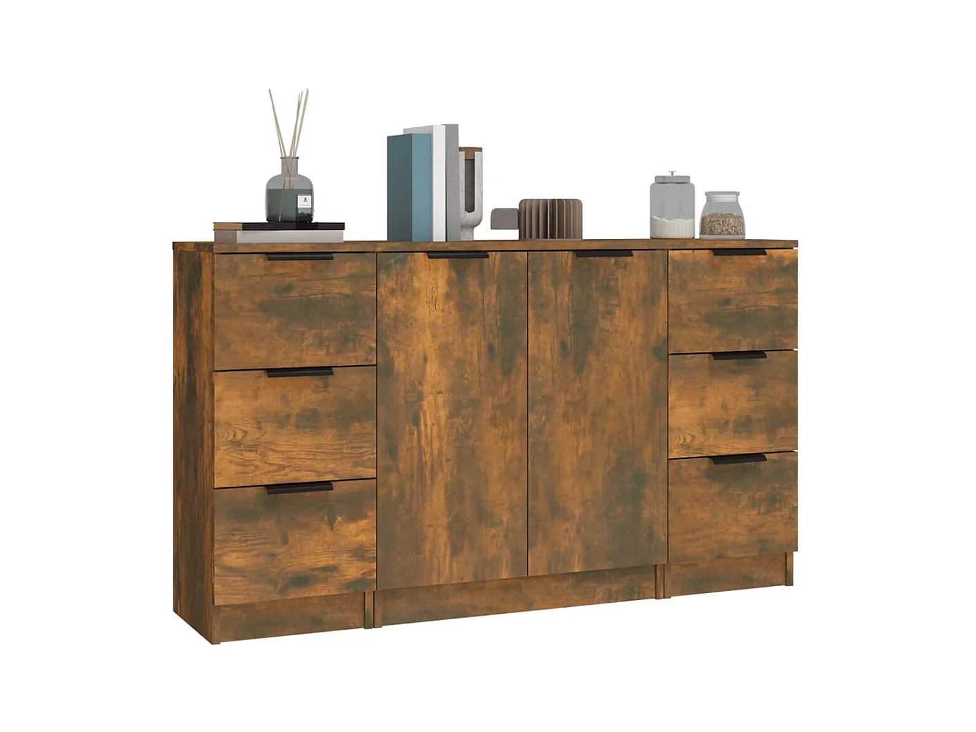 Sideboards im 3er-Set Lowboards Räuchereiche Holzwerkstoff -RM61990