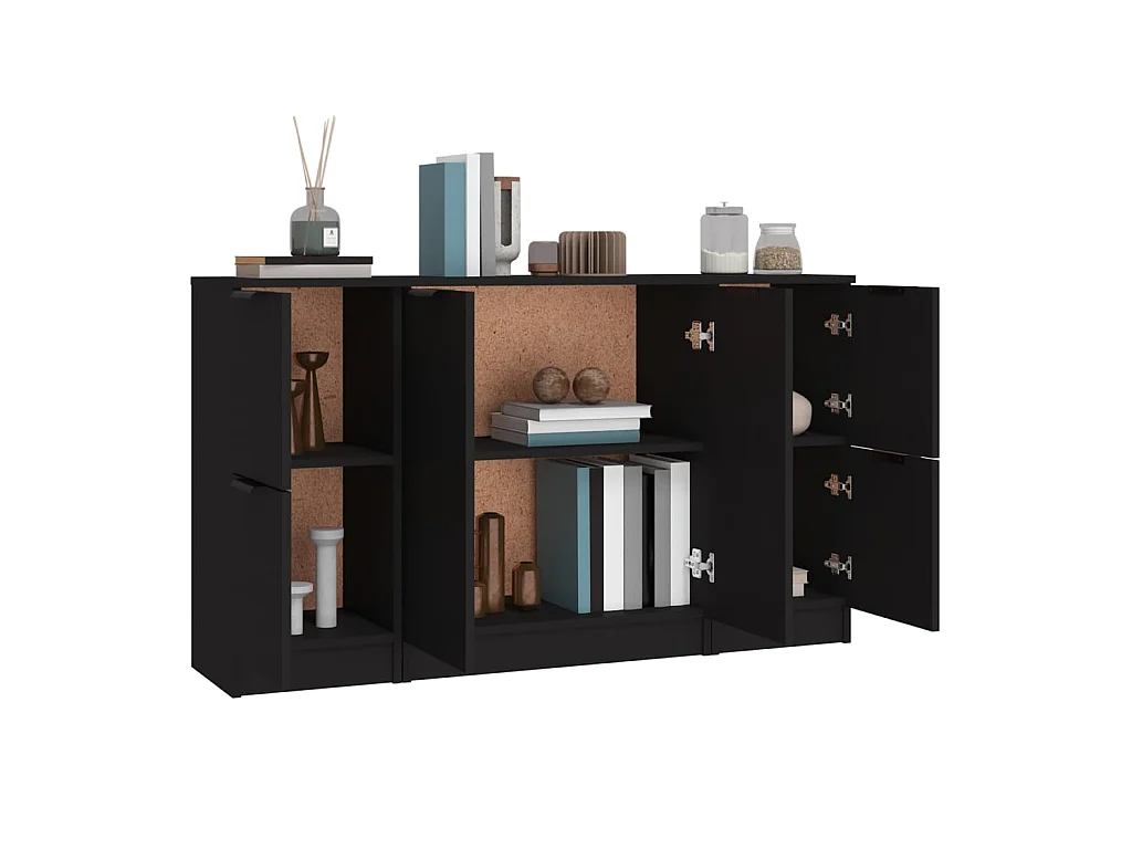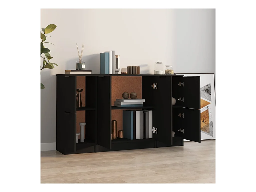 Sideboards im 3er-Set Lowboards Schwarz Holzwerkstoff -RM41536