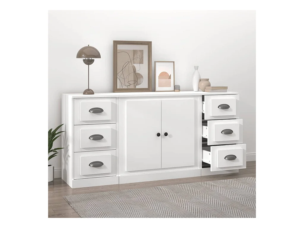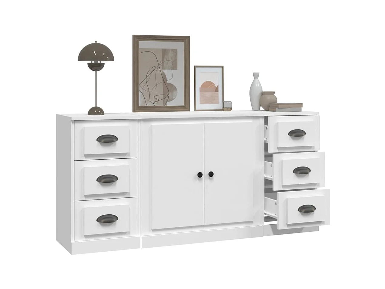 Sideboards im 3er-Set Lowboards Weiß Holzwerkstoff -RM44436