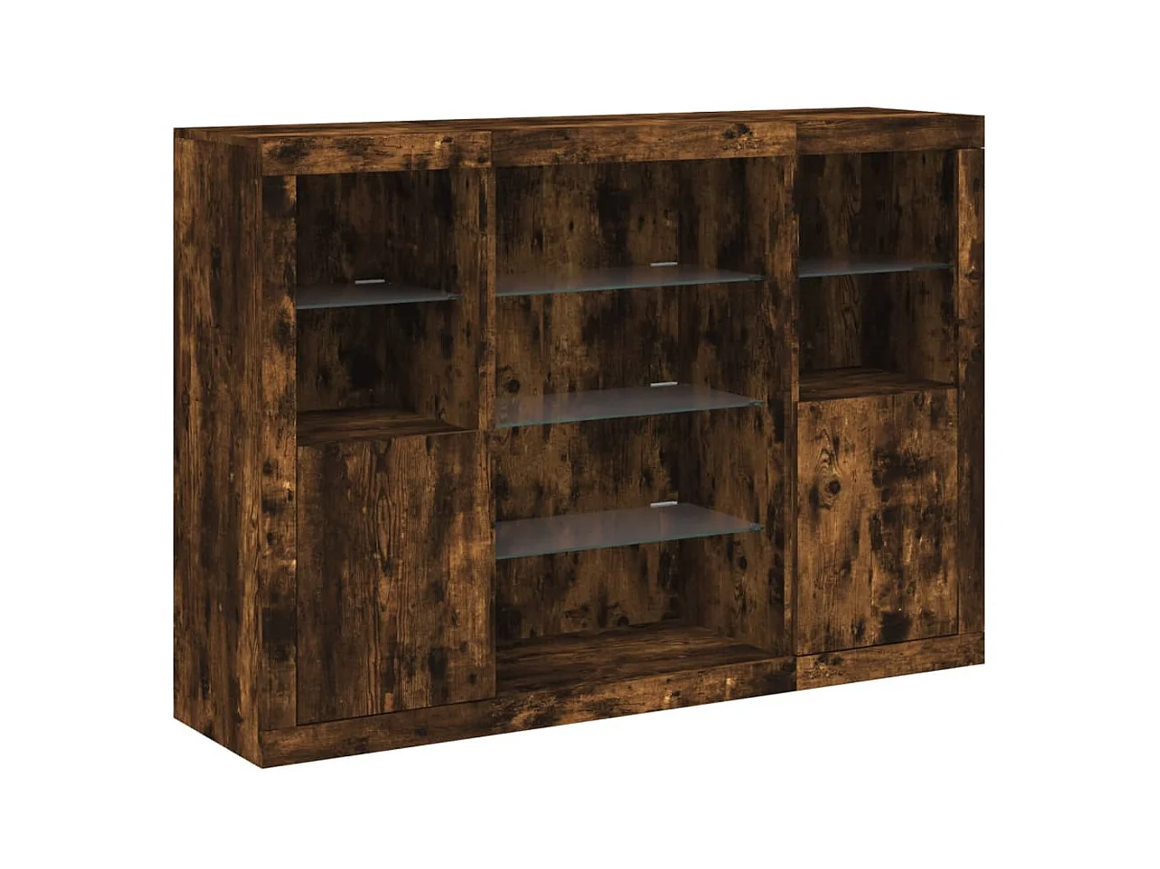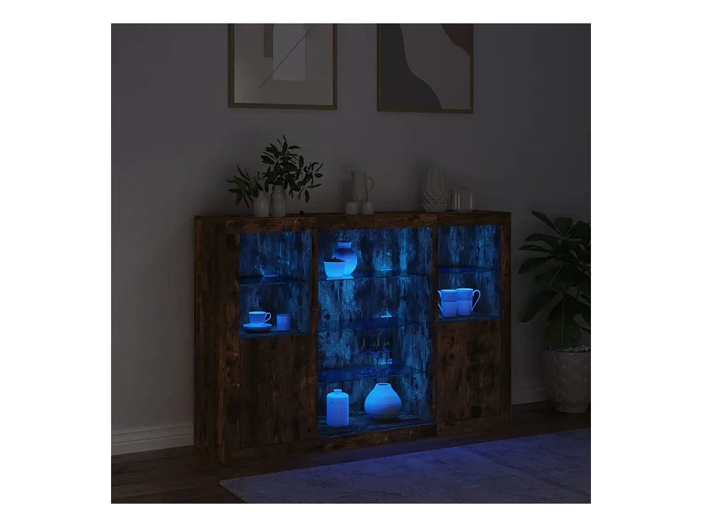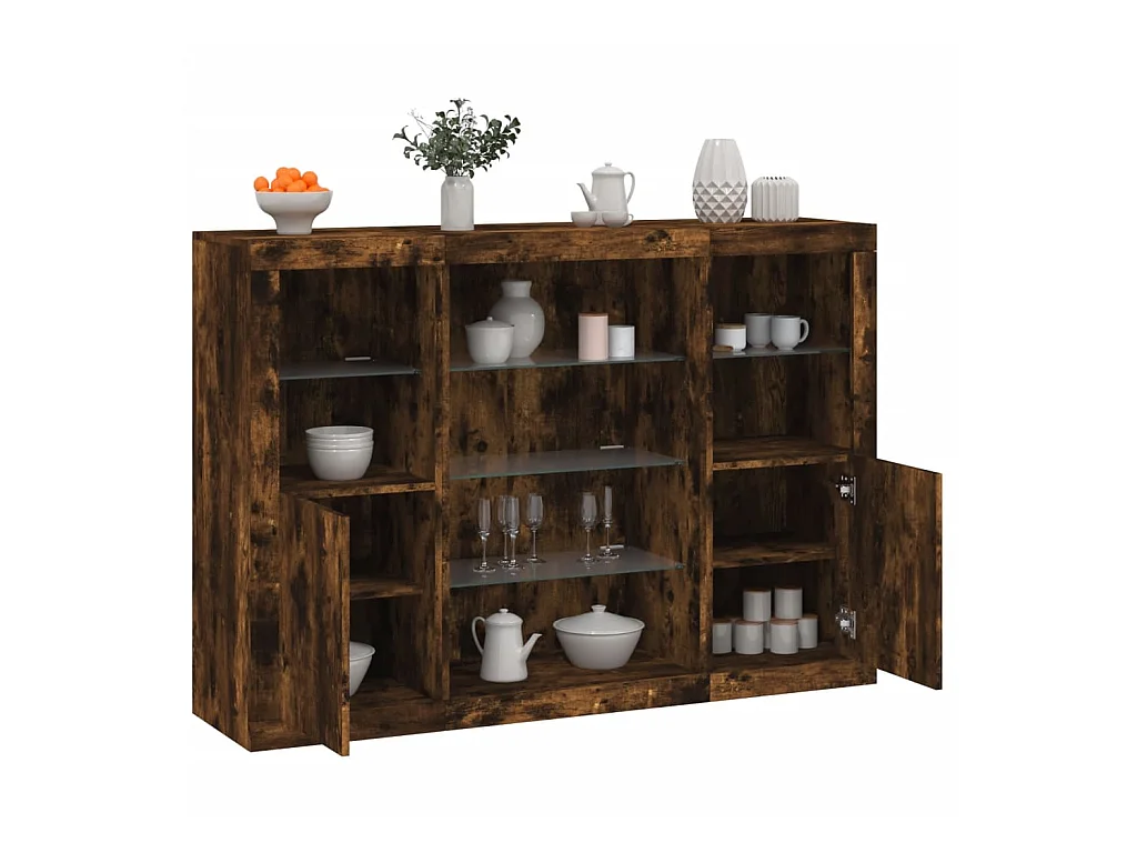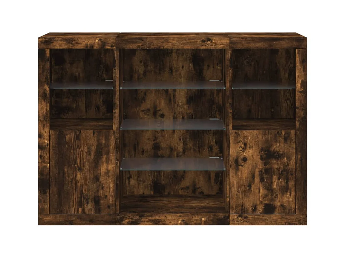 Sideboards mit LED-Leuchten im 3er-Set Anrichten Räuchereiche Holzwerkstoff -RM23270